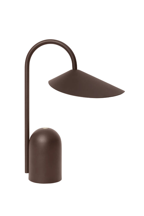 Arum bærbar lampe fra Ferm Living er en allsidig og mobil belysningsløsning. Den lille, bærbare LED-lampen er oppladbar via USB-C, slik at du enkelt kan skape en stemningsfull atmosfære hvor enn du er. Selv om den deler formspråk med Arum bordlampe, er denne bærbare versjonen laget helt i pulverlakkert jern og aluminium, noe som gir både slitestyrke og en gjennomført finish. Designen viderefører kolleksjonens karakteristiske balanse, der den bladformede skjermen ser ut til å sveve fra den stilkformede stangen. Lampen har en tretrinns touchdimmer som gir justerbar belysning tilpasset ulike behov.