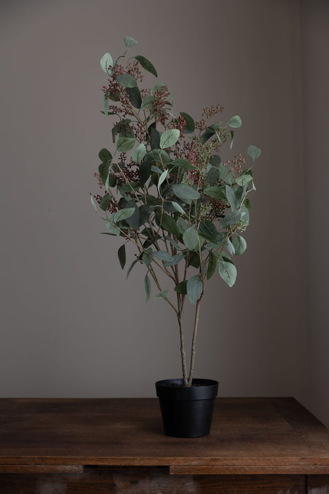 Grønne planter i vakre potter og vaser tilfører liv og varme til rommet, og skaper en balansert og hyggelig stemning.