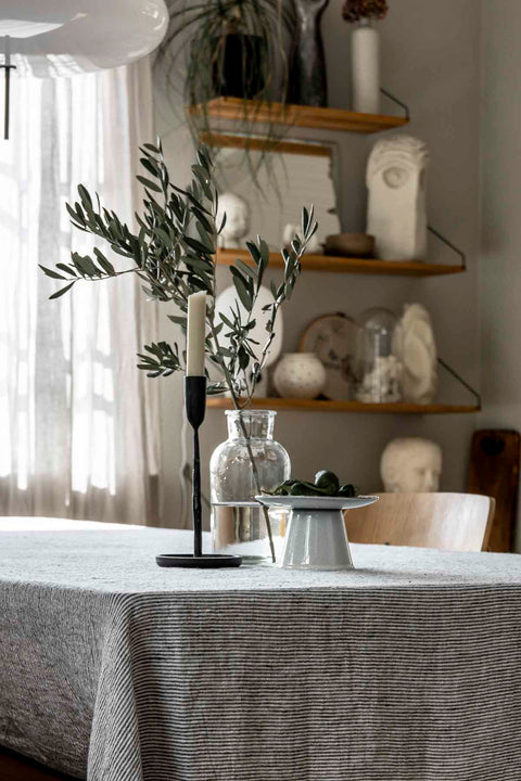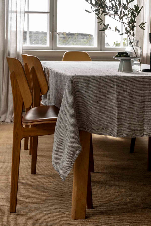 Linge Particulier har en kvalitet som ikke kan kopieres, og den litt krøllete teksturen etter vask gjør den bare enda vakrere – stryking er ikke nødvendig! Denne duken er like perfekt hjemme som på hytta, og er et produkt vi er stolte av å ha i Bolina.