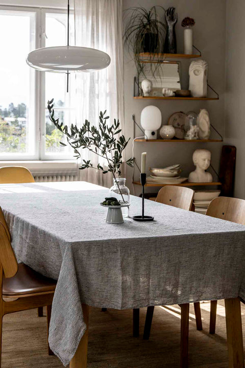 Eksklusiv duk av 100% vasket lin fra Linge Particulier. Vi i Bolina har elsket Linge Particulier i en årrekke – og med god grunn. Dette franske merket leverer høykvalitets, europeisk lin som ingen andre. Duken er laget av mykt, plaggvasket lin som gir en avslappet, rustikk følelse, perfekt for både hverdag og festlige anledninger. De tidløse mønstrene og naturlige fargene gjør den til et uunnværlig element på ethvert bord.
