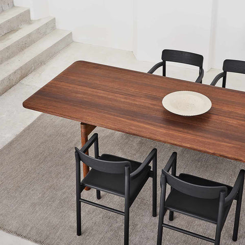 Fredericia Furniture leverer bord som kombinerer tidløs skandinavisk estetikk med funksjonalitet og førsteklasses materialer. Blant de mest populære seriene finner du Piloti bord, med sitt minimalistiske uttrykk, og Ana bord, et allsidig spisebord som passer til både hverdag og fest. Ikke minst står Børge Mogensens bord BM67 eller Mogensen C18 Shaker Table som tidløse designklassikere, kjent for sitt solide håndverk og enkle tidløshet. Fredericia tilbyr et bredt utvalg av både sofabord og spisebord, designet for å passe sømløst inn i moderne og klassiske hjem.