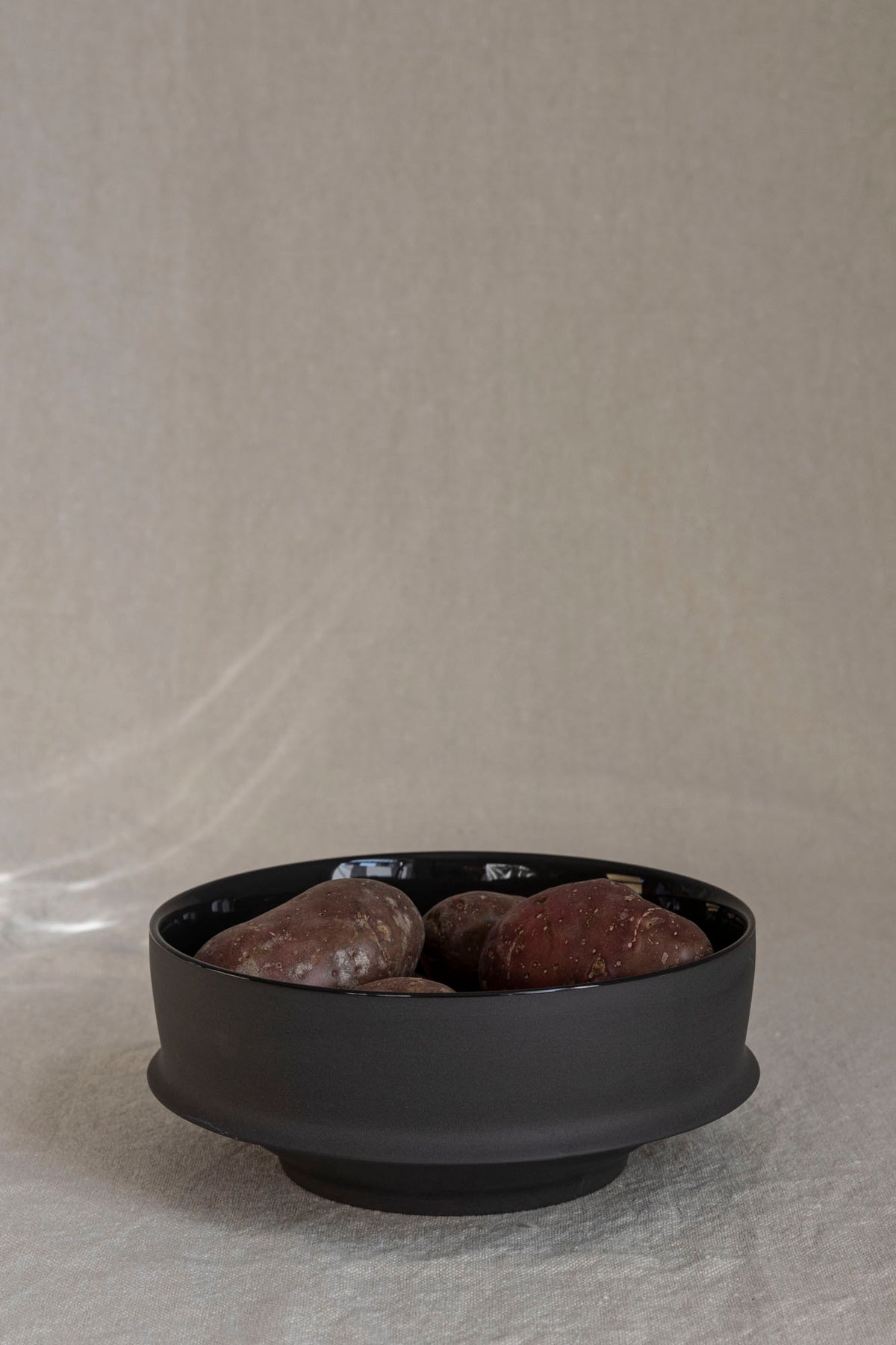 Skål fra Dune-kolleksjonen designet av den ledende amerikanske designeren Kelly Wearstler. Dune tar inspirasjon fra gammel keramikk, hvor Wearstler fremhever de skulpturelle formene og bruker ulike materialer som porselen, tre og glass for å skape et balansert og taktilt uttrykk til kolleksjonen. Glassene, koppene, skålene, tallerkenene og serveringsfatene kombinerer to finisher - matt og blank – med balanserte detaljer som skaper slående volumer og harmoniske komposisjoner. Porselensproduktene i kolleksjonen kommer i tre vakre jordfarger: alabaster, clay og slate. Perfekt å mikse og matche med eksisterende servise eller kombiner med andre produkter fra Dune-kolleksjonen.