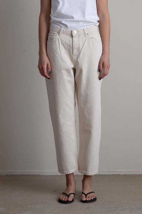 Allison cropped jeans fra Skall Studio er laget i økologisk bomull med middels høy midje og rett passform. Jeansen har klassisk femlommersdesign, beltehemper og en lett avkortet lengde som gir et avslappet uttrykk. Bak på linningen finner du det broderte SKALL-logoen som en diskret signatur. En tidløs og allsidig jeans som passer til det meste.