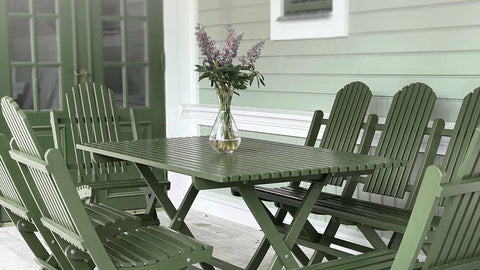 Møblene lages i lokal kjernefuru av førsteklasses kvalitet, behandlet med naturlig linolje eller maling som lar treverket puste. Dette gir solide og holdbare utemøbler som er enkle å vedlikeholde. Skruer og beslag er i rustfritt stål for ekstra slitestyrke.