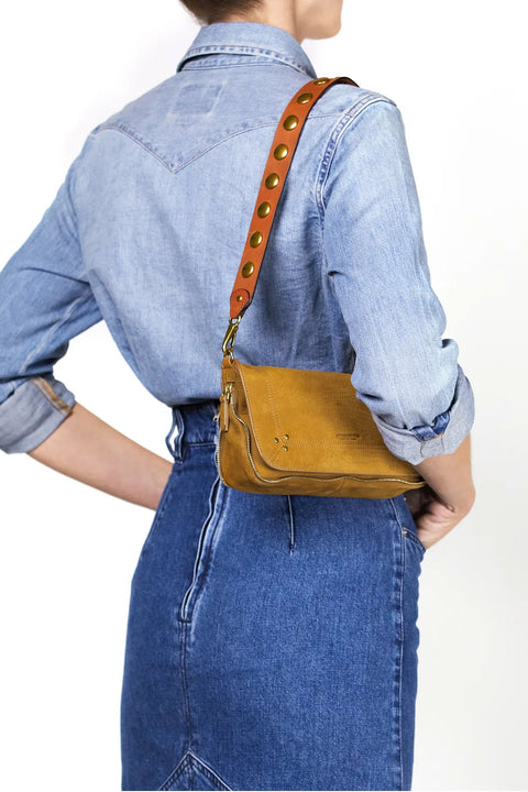 Gjør din veske unik med den råeste veskestropp fra Jerome Dreyfuss. Avtakbar skulderrem laget av en flettet skinnkjede. Remmen er laget av ekte vegetabilsk garvet kuskinn besatt med store, avrundede metallnagler og en krok i hver ende. Kan kombineres med Bobi, Igor, Lulu…