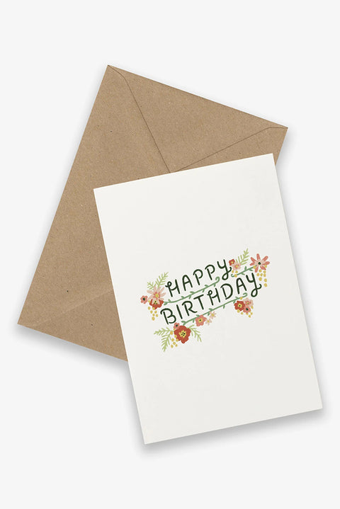 Enkeltbrettet A6-kort med en C6 konvolutt i kraftpapir. Håndtegnet print med tekst.