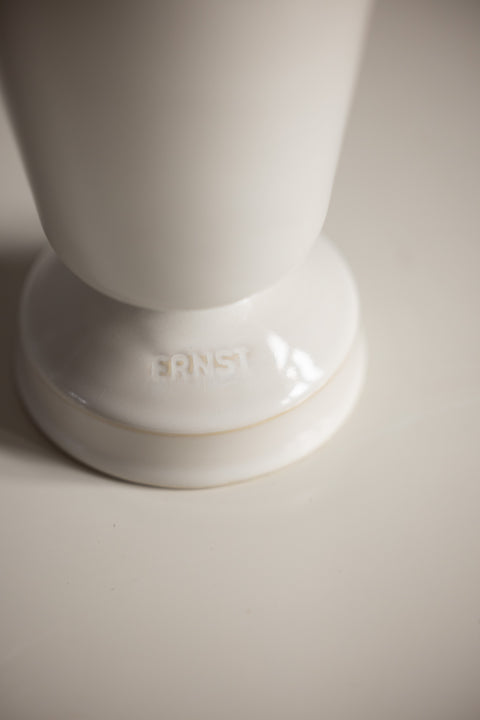 Vase fra svenske Ernst. Vasen har et klassisk design med en høy form som gir en flott ramme til blomsteroppsatser. Den solide foten gjør den stabil og dekorativ, enten du fyller den med lange blomster som tulipaner eller liljer, eller lar den stå alene som en. Den glaserte overflaten gir en tidløs følelse som passer inn i ulike hjem og stiler. Et praktisk og vakkert valg for hjemmet ditt.