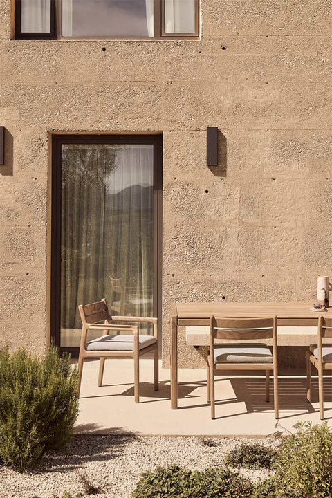 Jack spisestolen fra Ethnicraft er designet med fokus på komfort og holdbarhet for utendørsbruk. Laget av solid teak og med et sete trukket i belgisk-vevet stoff, gir denne stolen en tidløs kombinasjon av klassiske linjer og moderne detaljer. Setet er fylt med hurtigttørkende skum, og materialene er nøye valgt for å tåle vær og vind. Perfekt til bruk på terrassen, i hagen eller som en del av spiseplassen utendørs. Jack spisestolen kombinerer praktiske funksjoner med et gjennomført design som passer til både formelle og avslappede settinger i uterommet.