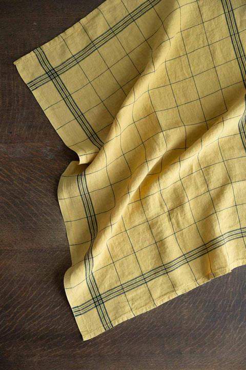 Kjøkkenhåndkle fra Charvet Editions som er vevd i 100% lin med klassisk rutemønster i en varm gul nyanse. Det har en tidløs og funksjonell utforming som passer like godt på et landlig kjøkken som i en moderne leilighet. Lin er slitesterkt og svært absorberende, og blir bare mykere og mer behagelig i bruk over tid.