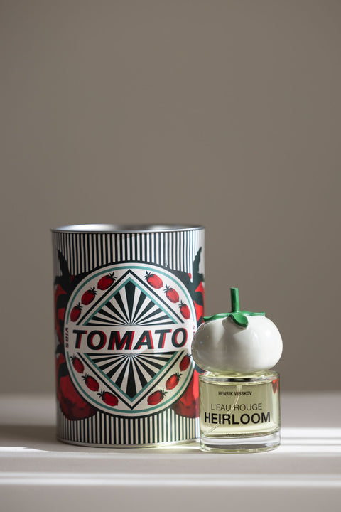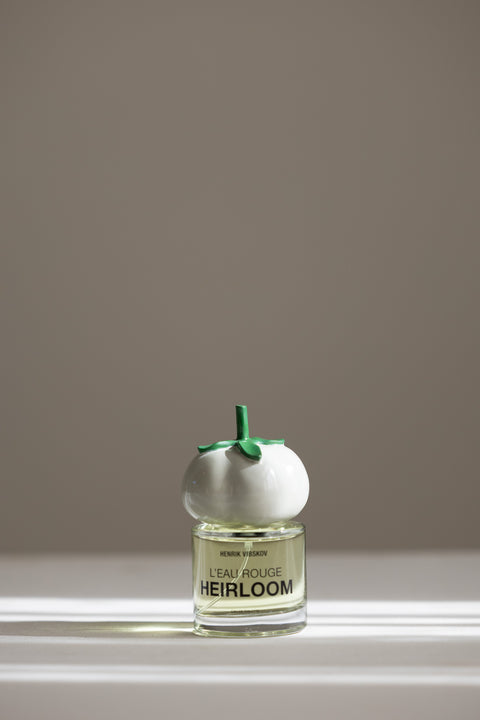 L’eau rouge Heirloom fra Henrik Vibskov er en grønn og livlig duft fra kolleksjonen Long Fingers To Ma Toes, som kombinerer gressaktig friskhet fra basilikum med den intense og grønne duften av tomatblader. Basilikum gir en urtepreget energi, mens tomatbladene tilfører en sval og nesten rå hagefølelse, som sammen skaper et duftbilde av en solfylt kjøkkenhage der grønne blader knuses mellom tærne.