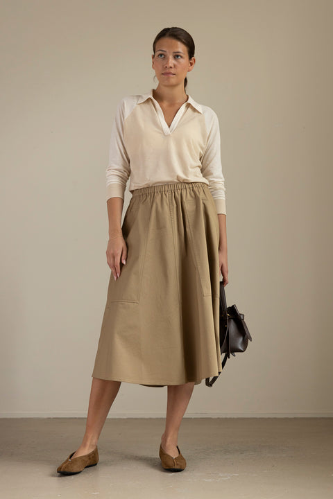 Myk polo-genser fra Vince. Genseren er laget i japansk bomullskrepp som gir en lett struktur og et avslappet fall, perfekt til årets sommersesong! Med tonale fargeblokker og diskré krage får den et rent og behagelig uttrykk, samtidig som den er behagelig å ha på hele dagen. Genseren er superfin til både skjørt og bukser, og blir fort en hverdagsfavoritt med en diskret, moderne vri.