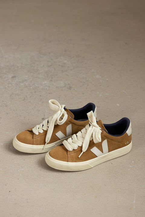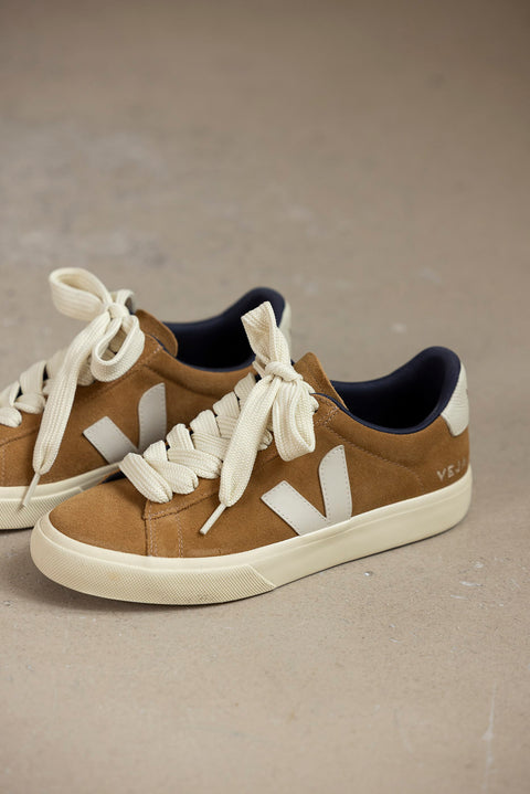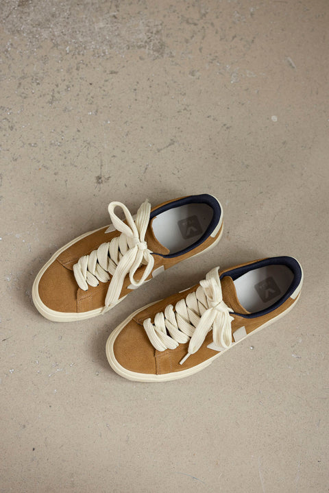 Sneakers fra Veja med overdel i semsket skinn og en klassisk silhuett som passer til det meste. Modellen er laget i Brasil med fokus på ansvarlige materialvalg og miljøvennlige prosesser. Skinnet er behandlet uten skadelige kjemikalier og har fått en vannavvisende finish som beskytter mot lett regn. Innsiden er fôret med resirkulert polyester, og både innersålen og yttersålen er laget med en blanding av naturlige og resirkulerte materialer. Et godt valg for deg som vil ha en sko som både ser bra ut og er laget med omtanke.