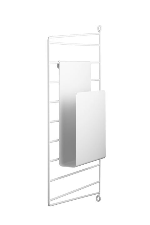 Magasinholder selges som et enkeltprodukt du lett kan kombinere med ditt String System. Velg en magasinhylle i samme farge som panelene dine, eller få magasinhyllen til å stå ut ved å velge en annen farge.