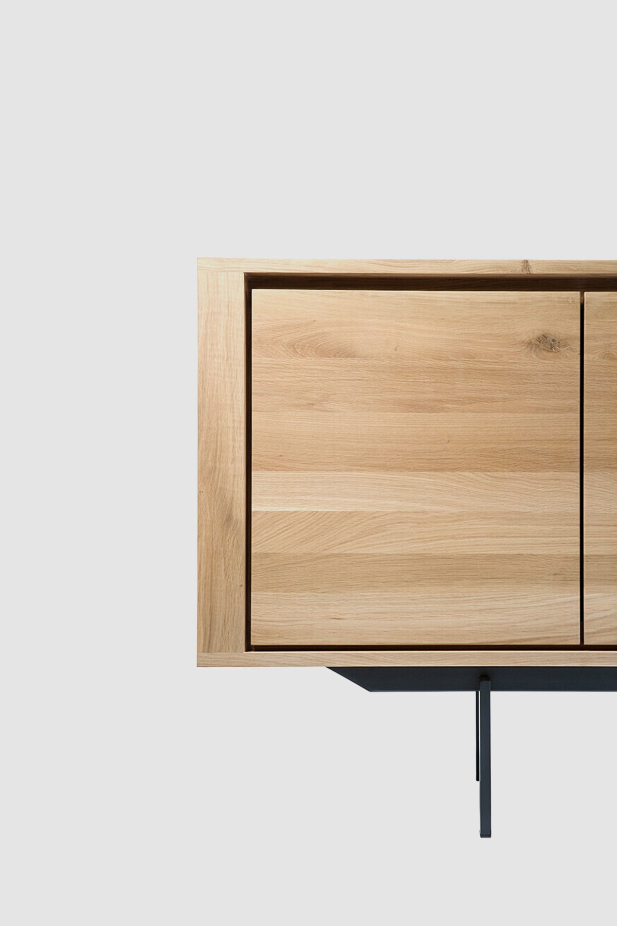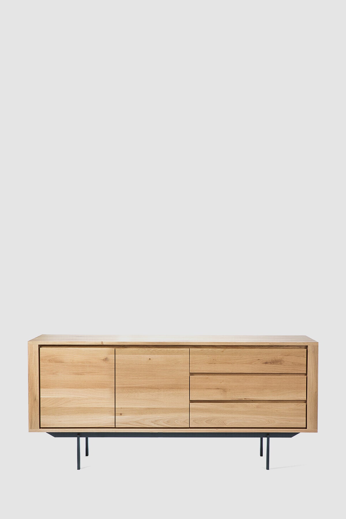 Shadow-kolleksjonen fra belgiske Ethnicraft kjennetegnes av enkelt og robust design med stramme linjer som komplimenterer den nordiske stilen. Skjenken er laget i massiv, oljet eik med pulverlakkerte ben i sort stål, som gir det en klassisk look med en moderne vri. Skjenken har god lagringsplass med tre skuffer og to dører, og er helt uten synlige håndtak og knotter som understreker det minimalistiske uttrykket. Shadow er et vakkert oppbevaringsmøbel til stua, soverommet eller i gangen og er laget av høykvalitets, europeisk, oljet eik. Ethnicraft lar materialet komme til sin rett ved å la de naturlige variasjonene og teksturene i treet være synlige. Kombinasjonen av moderne design, sterk konstruksjon og varige materialer gjør det til den ideelle oppbevaringsløsningen for alle hjem.