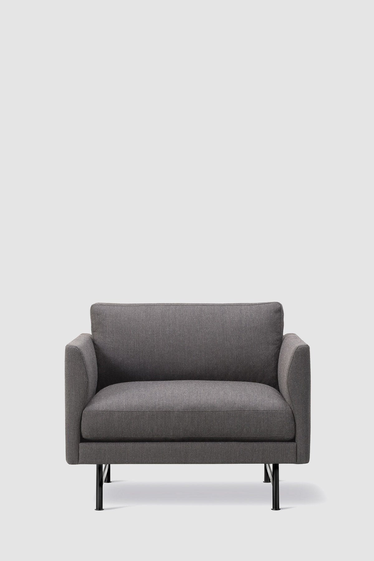 Calmo Loungestol designet av Hugo Passos for danske Fredericia. Med Calmo-serien har Fredericia oppdatert den klassiske sofaen med et moderne uttrykk og uanstrengt eleganse, som passer inn i de fleste hjem. Stolen har en sjenerøs dybde og herlig sittekomfort. Man vil rett og slett ikke reise seg igjen! Loungestolen er fremstilt etter tradisjonelt håndverk og er svært robust. Her investerer man i ekte håndverk og kvalitet som varer.