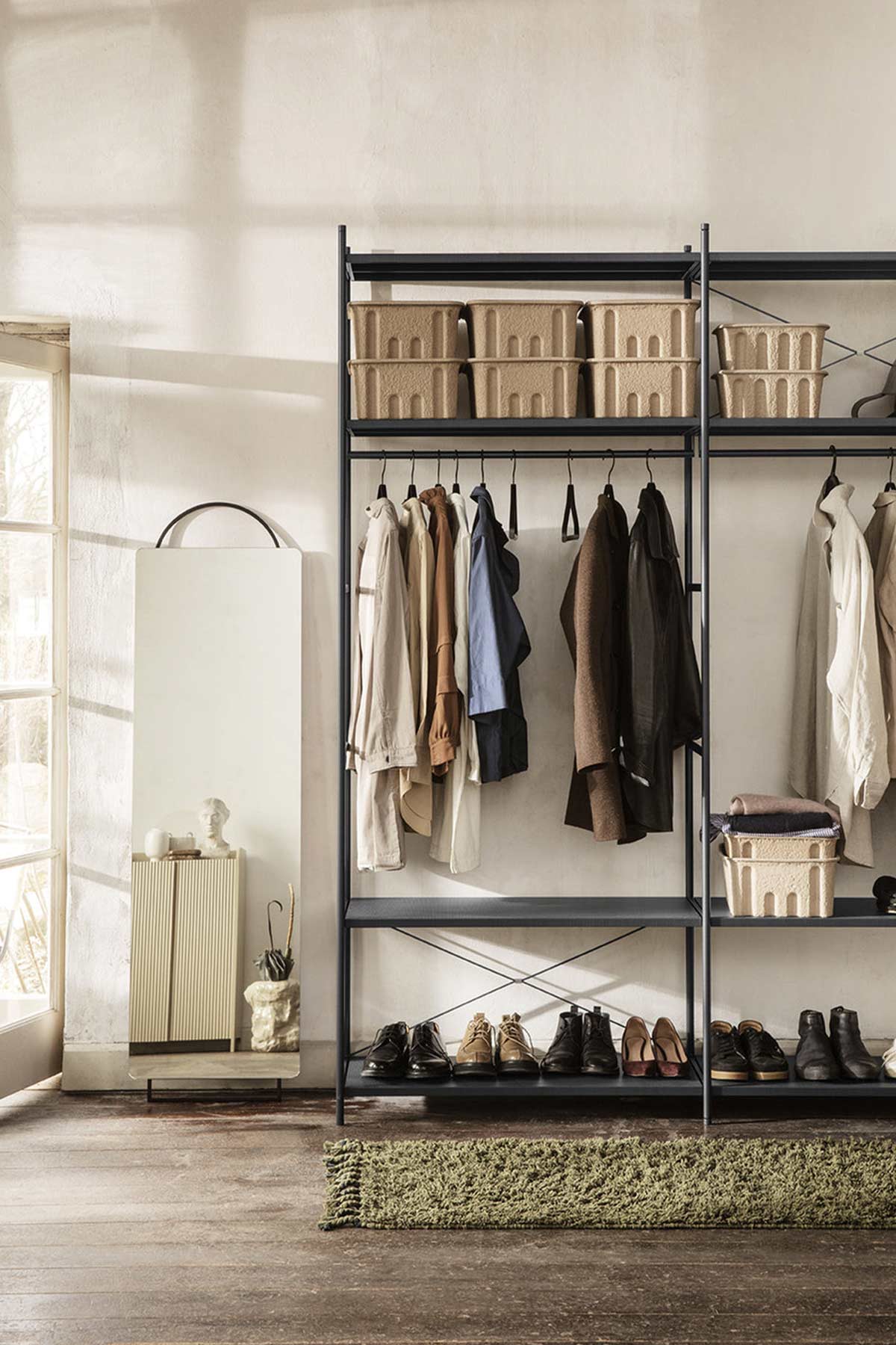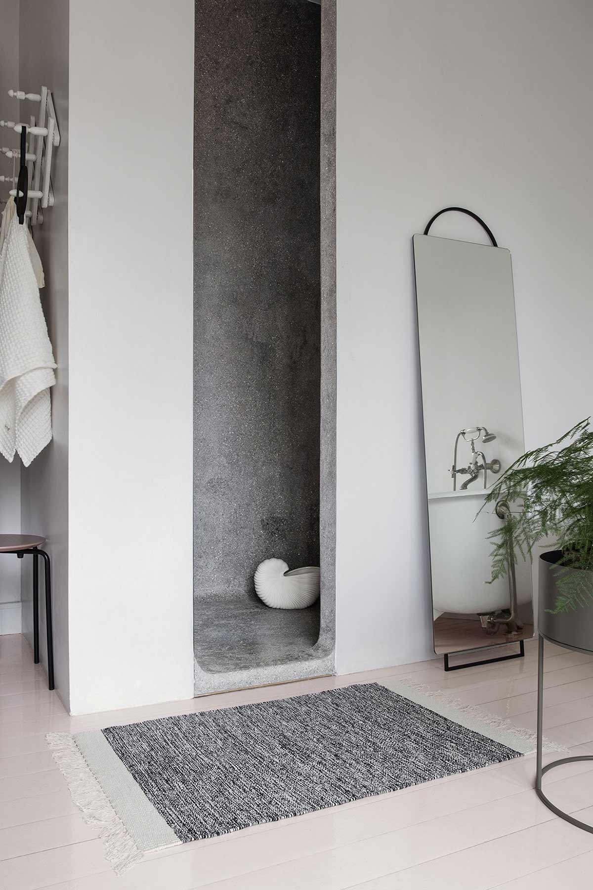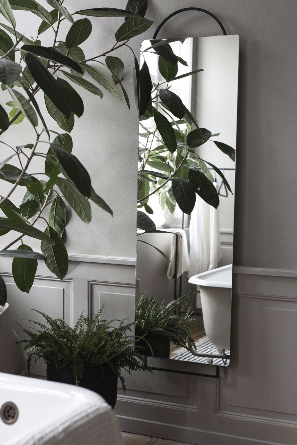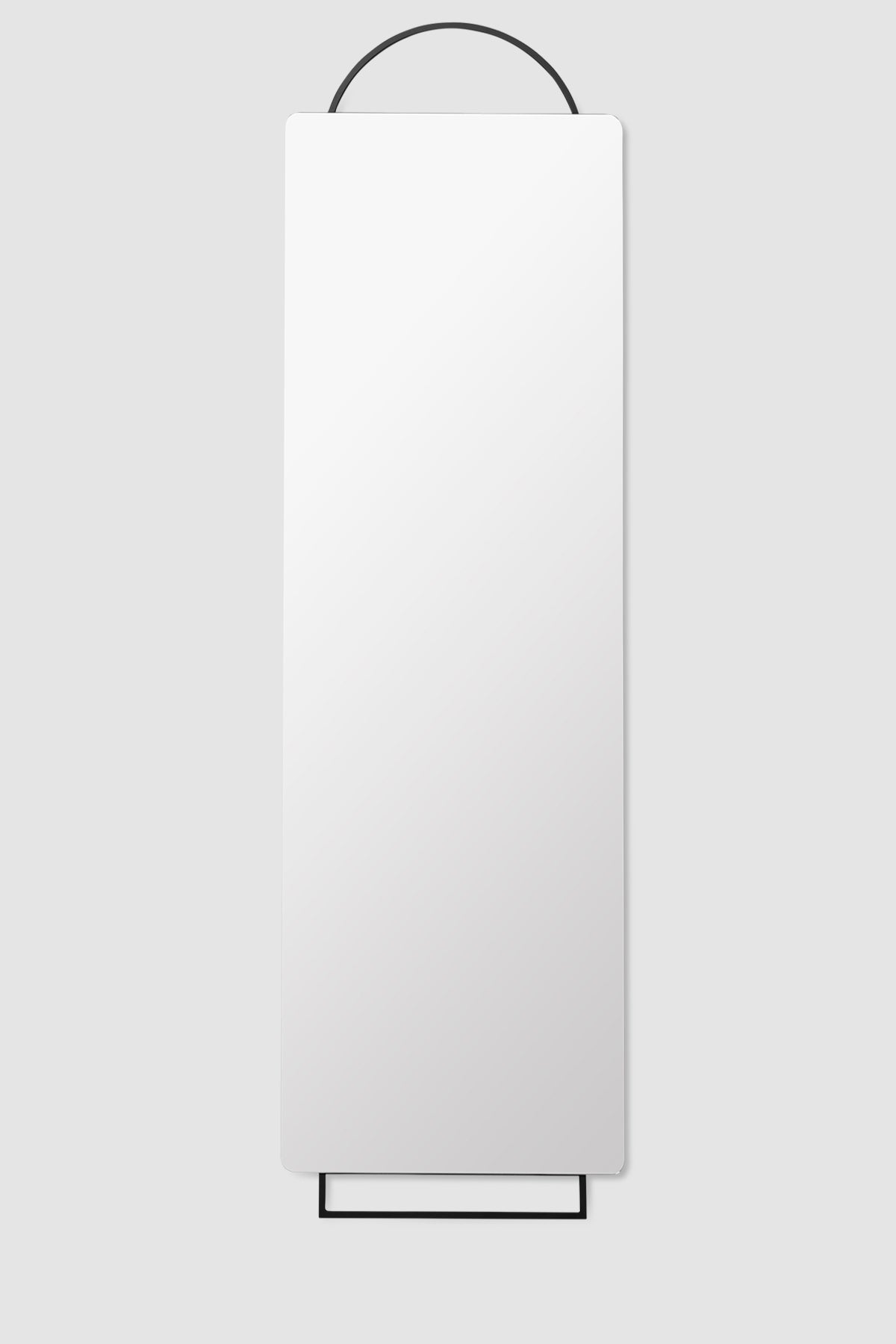 Utrolig flott speil fra Ferm Living. Speilet henter inspirasjon fra elegante smykker, med sin moderne ramme i pulverlakkert stål. Speilet kan plasseres mot veggen eller henges opp med festene man finner på baksiden.