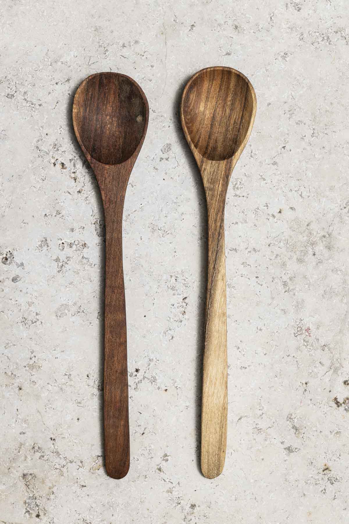 Salatbestikk av akasietre fra svenske Bruka. Perfekt til servering, spesielt når du har gjester på besøk. Det rustikke designet vil se fint ut med all slags annet servise.