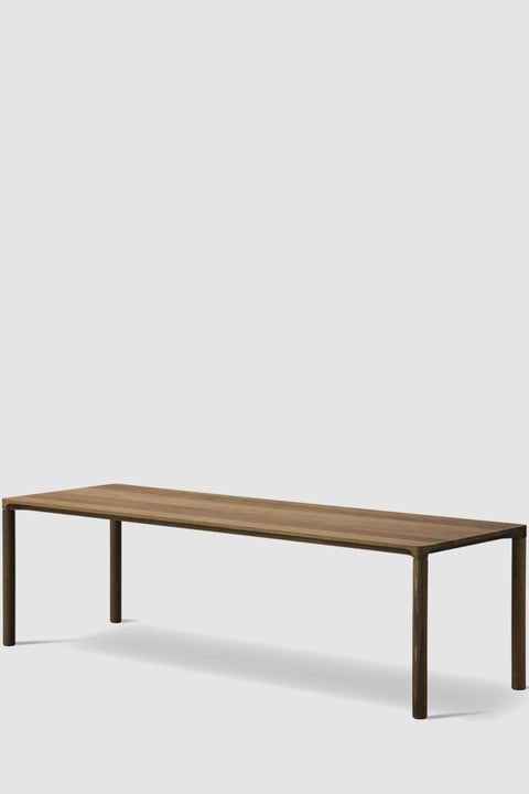 Piloti er et enkelt og minimalistisk bord i røkt eik fra danske Fredericia med subtil eleganse i materialenes kvalitet og overflate. Piloti-serien er designet av Hugo Passos for Fredericia og ble lansert i 2016. Den slanke bordplaten avløses av smekre og avrundede bordben i bordets fire hjørner. Til tross for det sarte designet er dette et svært robust bord som passer perfekt i alle hjem. Piloti-bordets allsidighet åpner for et bredt spekter av muligheter og bruksområder, som sidebord eller sofabord. Bordet er laget i solid eik og alle modeller kommer i to forskjellige høyder; 35 cm og 41 cm som gjør at man for eksempel kan sette to bord i ulik høyde i hverandre. Piloti fås i såpet-, oljet-, lakkert- eller røkt eik og bordet er svært enkelt å montere da bena lett kan skrus ut for å lette transport eller oppbevaring. Har du spørsmål om Piloti eller Fredericia, så ta gjerne turen innom butikken vår på Stabekk.