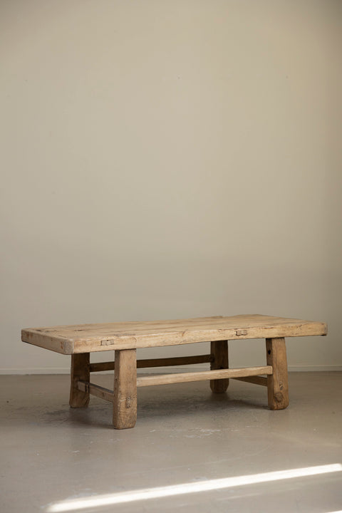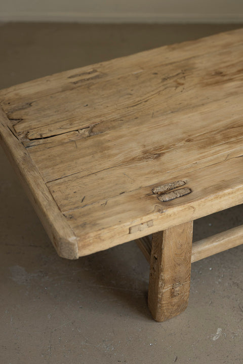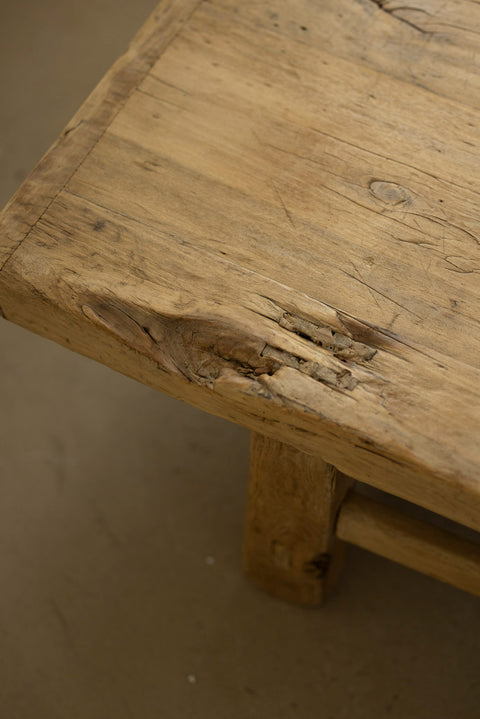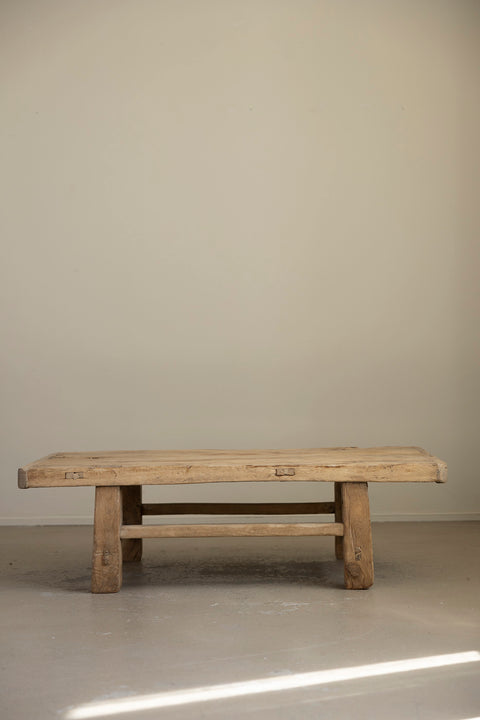 Loungebord fra Snowdrops Copenhagen med et smalt, rustikt uttrykk og lav høyde som passer perfekt til avslappede soner i hjemmet. Bordet er laget av over 100 år gammelt treverk hentet fra gamle hus, dører og vinduer, og bærer synlige spor etter tidligere bruk – med sprekker, merker og skjøter som gjør hvert eksemplar helt unikt. Den robuste konstruksjonen og det værbitte uttrykket gir bordet både karakter og sjel. Ideelt foran en loungestol, ved siden av sofaen eller som en dekorativ detalj i stuen.