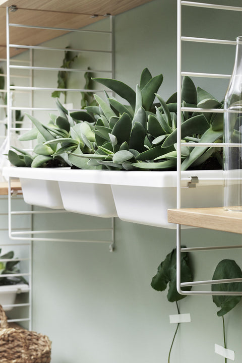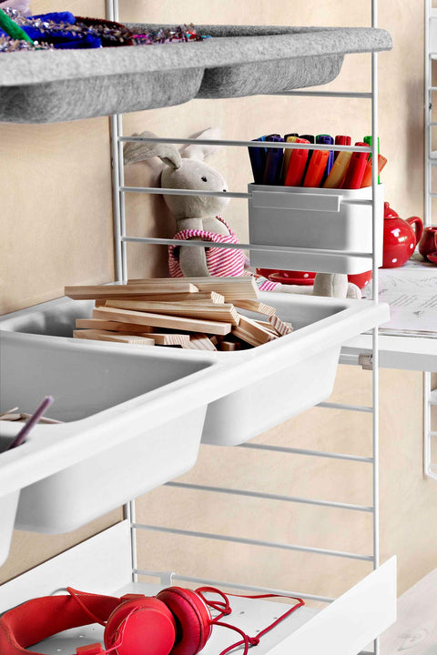 Skålplan i plastikk selges som en enkeltdel du praktisk kan kombinere i ditt String® System. Skålene i plastikk finnes i en bredde på 78cm og måler 30cm i dybde. Passer både til Flex og System forutsatt at gavlene er 30 cm dype.