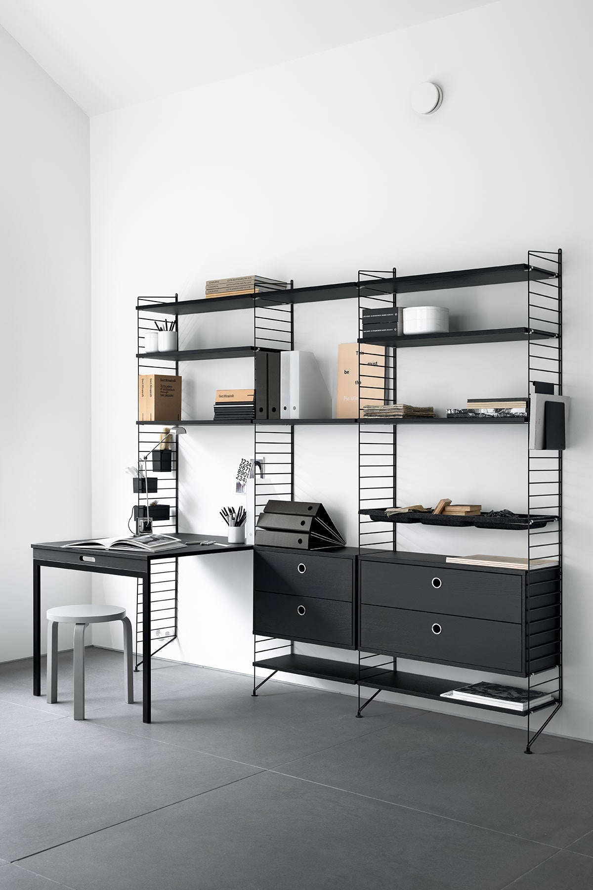 String® System er et fleksibelt hyllesystem som du selv kan skreddersy til ditt behov. Kombiner gavler, hylleplater, skap, skuffer, bord og annet tilbehør for å få ditt unike hyllesystem. Kjøp enkeltdeler eller ferdigkomponerte hyllesystem.