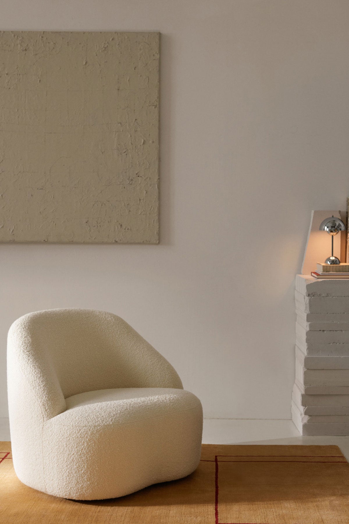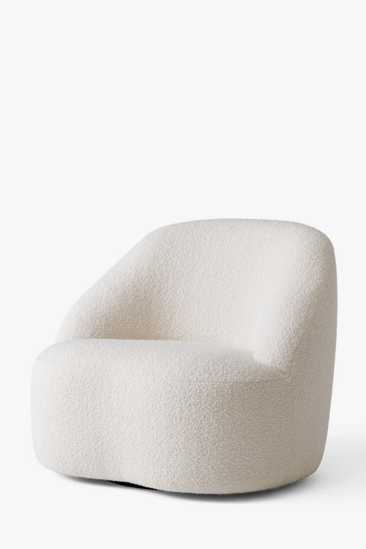 Hils på Margas LC2, en svingbar loungestol designet av Louise Liljencrantz for &Tradition. Stolen er oppkalt etter Louises elskede bestemor, Marga von Dardel, som Liljencrantz krediterer som det største forbildet i livet hennes. Den elegante loungestolen tilfører både varme og brukervennlighet, samtidig som stolen framstår som moderne med lette retrovibber. Stolens ramme er laget av massiv bøk og kryssfiner og deretter dekket med HR-skum og polyestervatt som gjør den både fast og superkomfortabel å sitte i. Bouclé-stoffet stolen er trukket i, Karakorum 001, består av en blanding av ull og viskose hvor materialene er flettet sammen i en ujevn tekstur av løkker og krøller, inspirert av vakre astrakhan-pelsverk. Stoffet er deilig mykt og klumpete - et ideelt møbeltrekk beregnet på intensiv bruk samtidig som det er en drøm å sitte på. Det klassiske designet gjør at stolen kan passe inn i mange ulike interiørstiler. Margas vil trives godt i stua, på soverommet eller i en lesekrok. Stolen kan snurres rundt og har også returfunksjon som gjør den ekstra praktisk og brukervennlig. Husk at stolen også kan bestilles i et hav av andre stoffer, så kom gjerne innom Bolina for å slå av en prat, kikke på stoffprøver og ikke minst prøvesitte!
