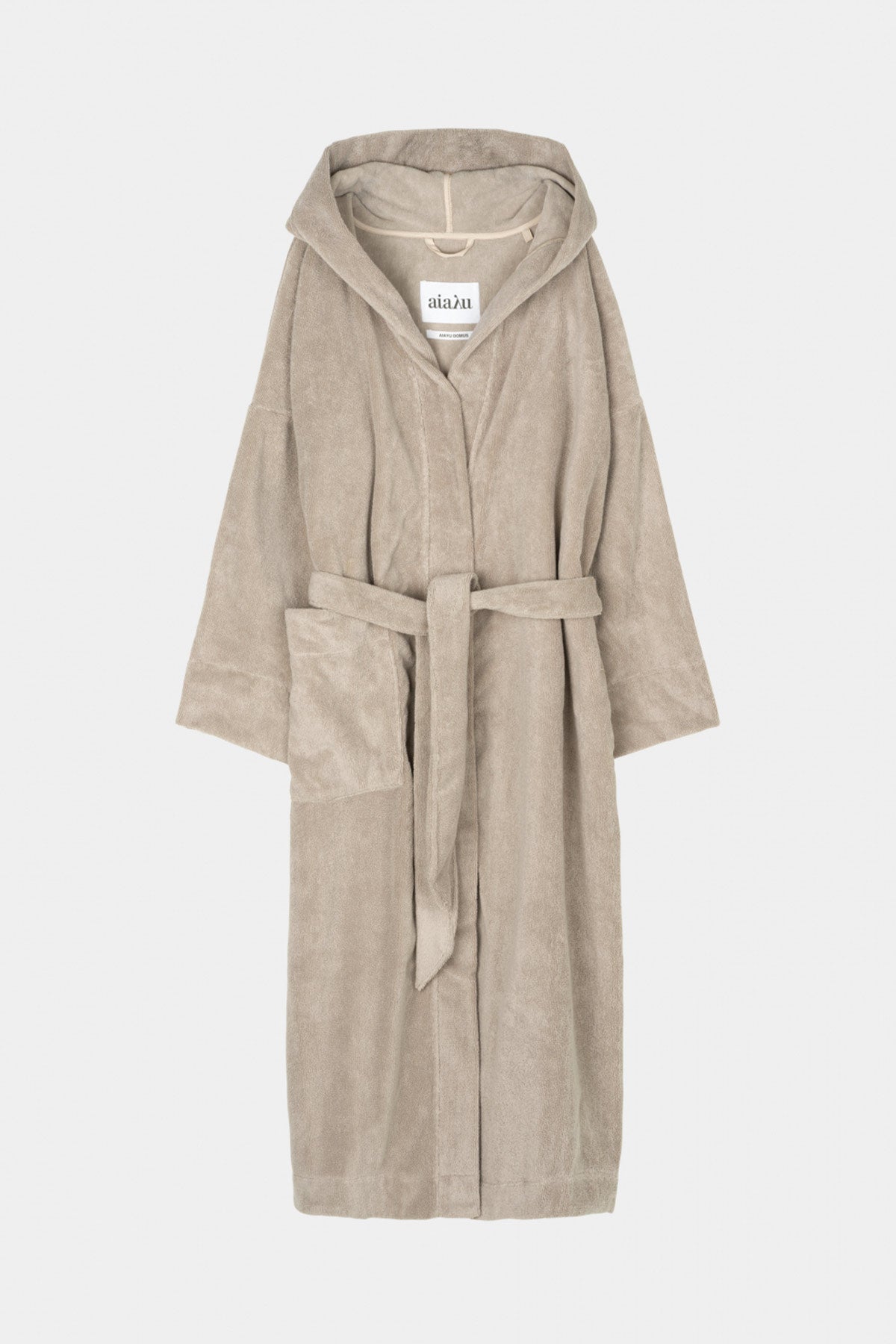 Aiayu Domus har fokus på bærekraft og kvalitet. Sortimentet består av en liten, men sterk samling av produkter produsert på en rettferdig måte. Materialet brukt i badekåpen er 100% økologisk, GOTS-sertifisert, og lokalt hentet og produsert i India på en fabrikk som ivaretar arbeidernes miljø og rettigheter.