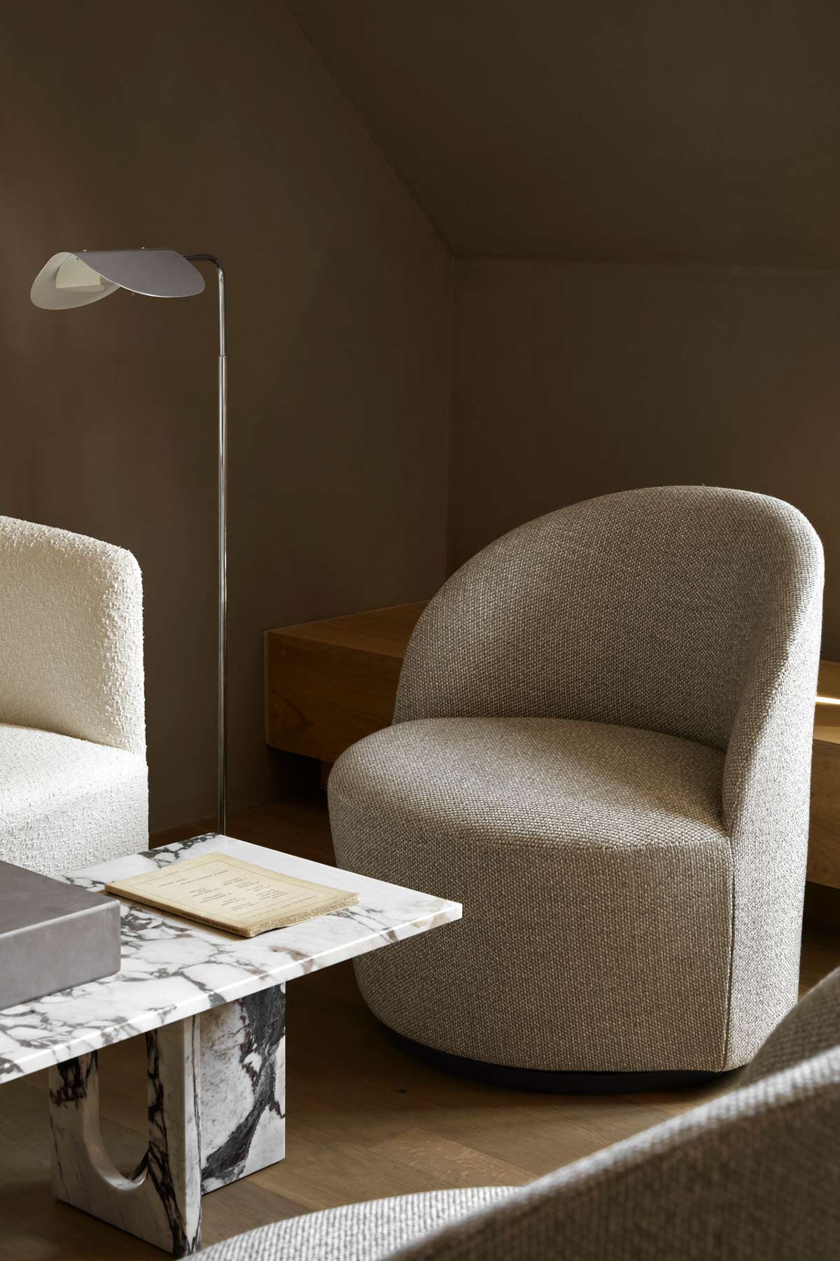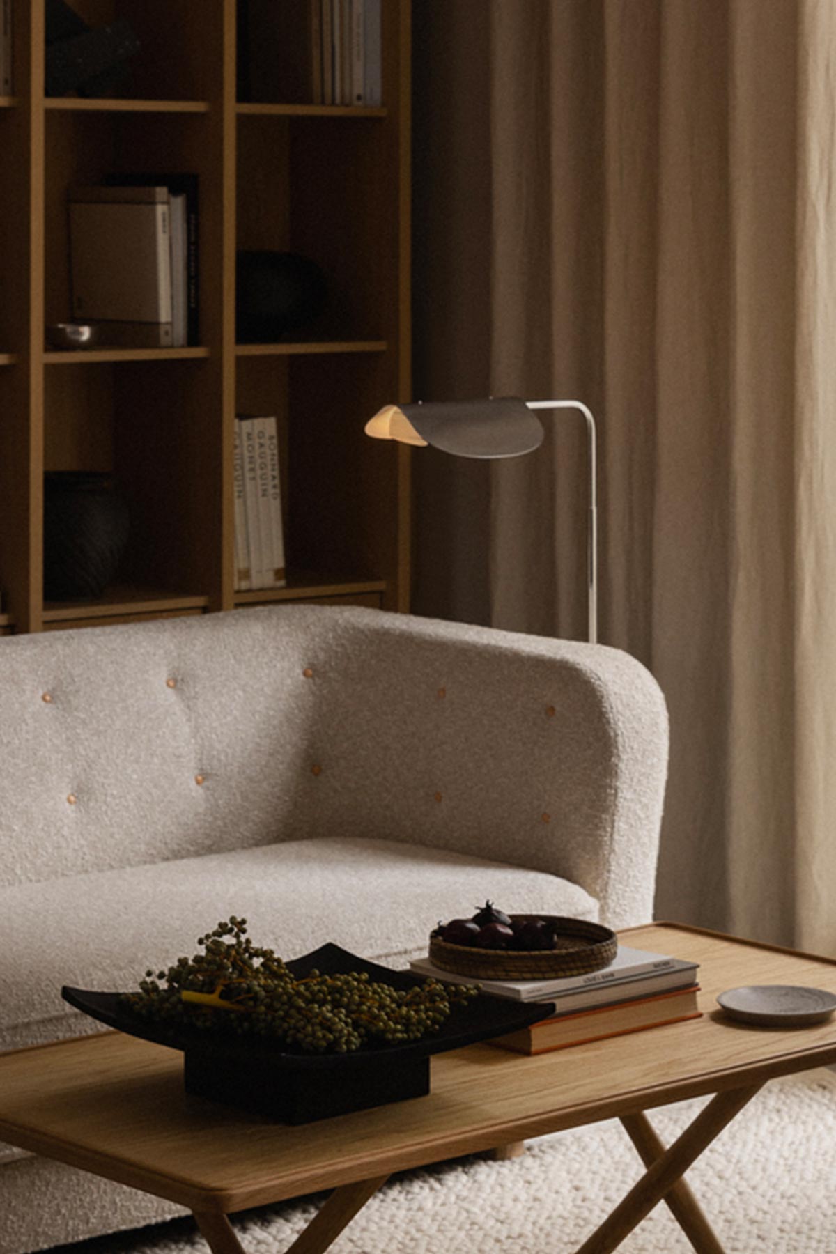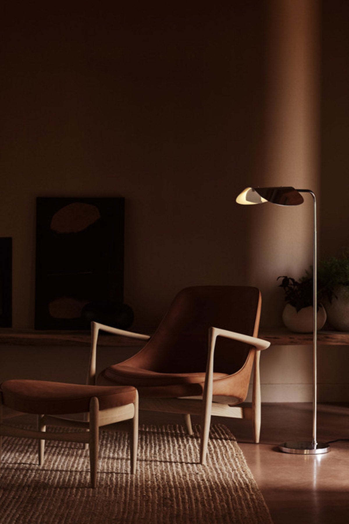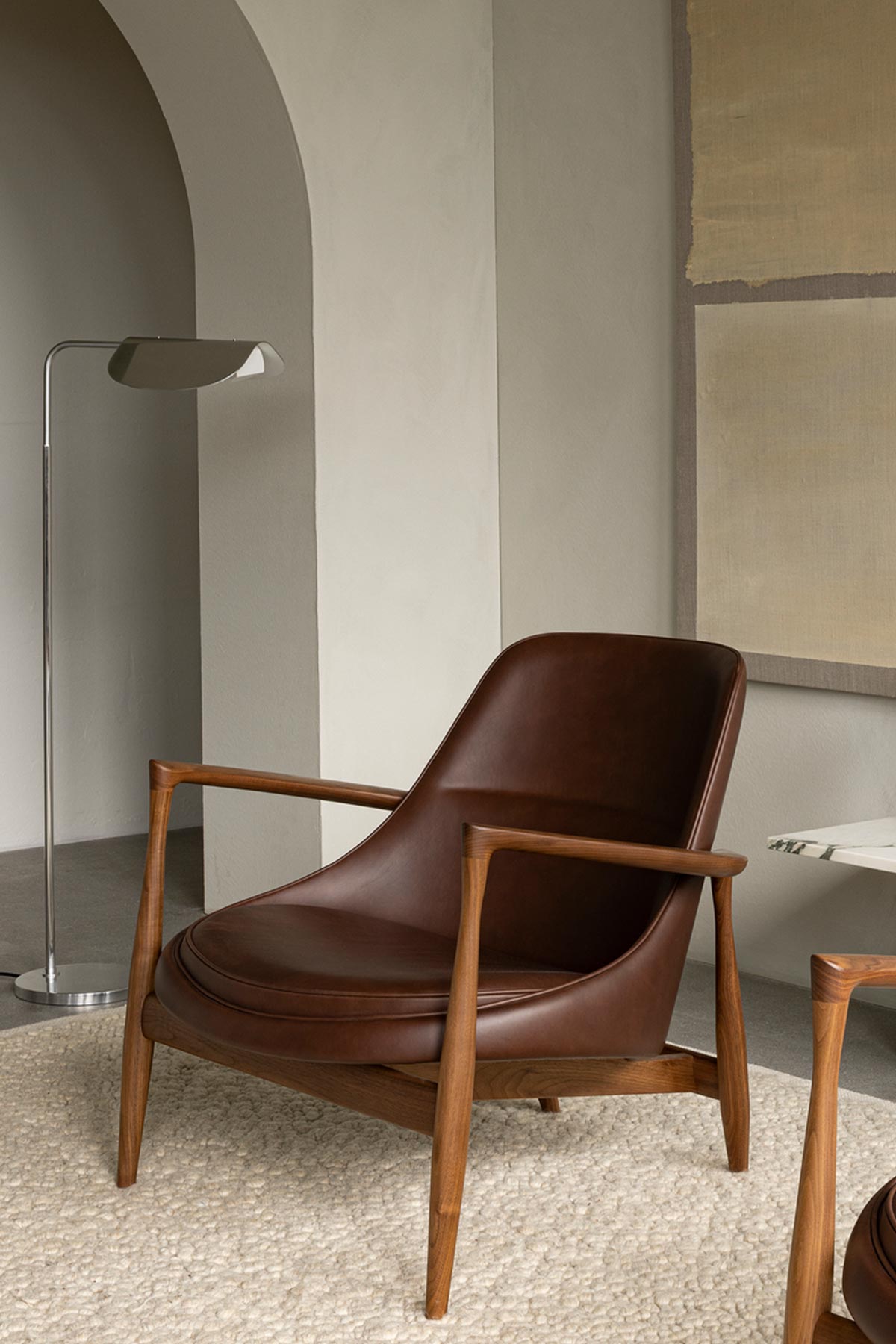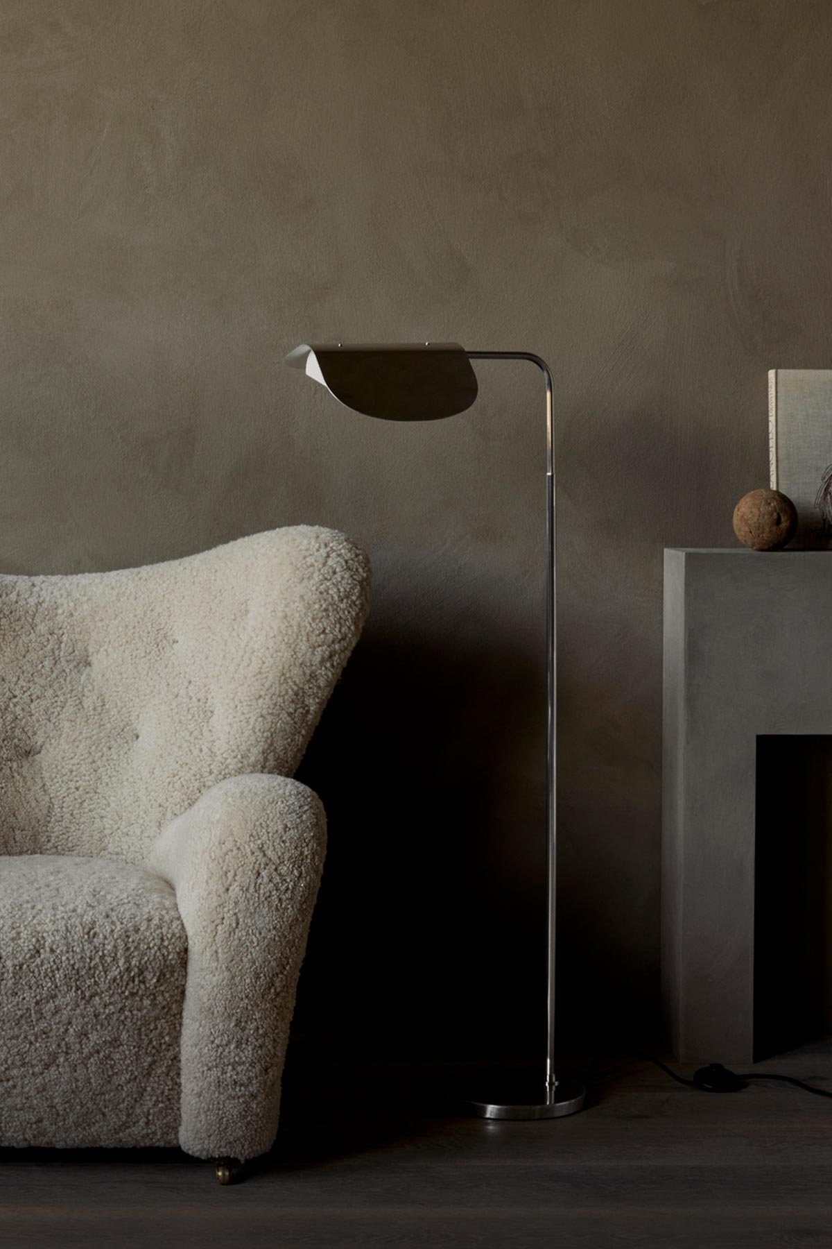 Wing gulvlampe, designet av Kenneth Bergenblad på 80-tallet. Lampen har et lekent preg og har fått navnet sitt fra sin vingelignende skjerm, som minner om en fugl på flukt. Wing består av en bøyd aluminiumsskjerm, spunnet aluminiumsbase og freste aluminiumsdetaljer som gir lampen et stramt uttrykk og minimal estetikk som smelter sømløst inn i enhver dekorstil. Den polerte aluminiumsskjermen kan roteres for å rette lyset dit det trengs. Bruk den i lesekroken, på soverommet eller ved sofaen i stua.