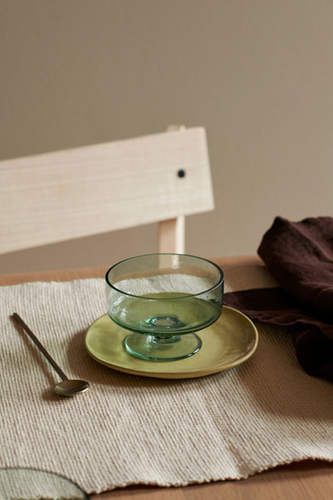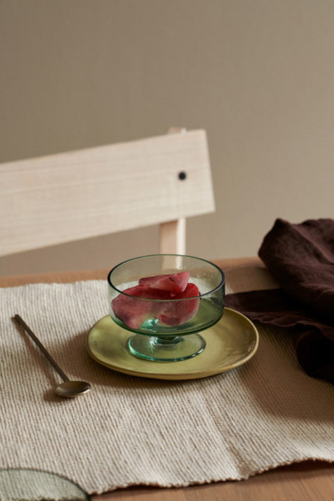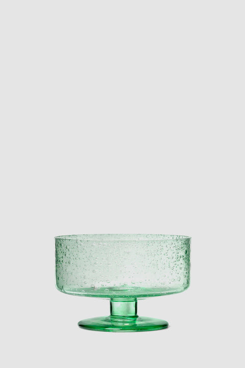 Oli Dessert Cups fra Ferm Living er laget av munnblåst, 100% resirkulert glass med en karakteristisk, subtil grønntone. Dessertskålene har særegne, små bobler skapt av luftlommer som er igjen mellom lagene av munnblåst glass. Hver dessertskål er unik i tykkelse og farge, på grunn av det resirkulerte materialet og den intrikate produksjons-prosessen.