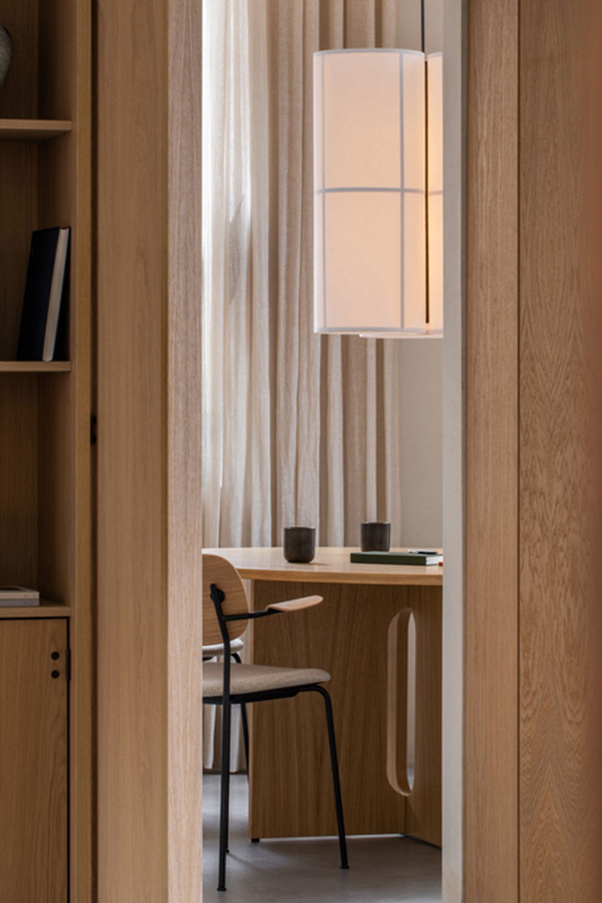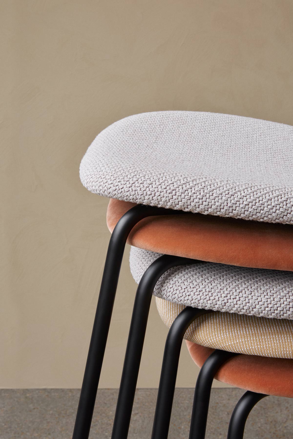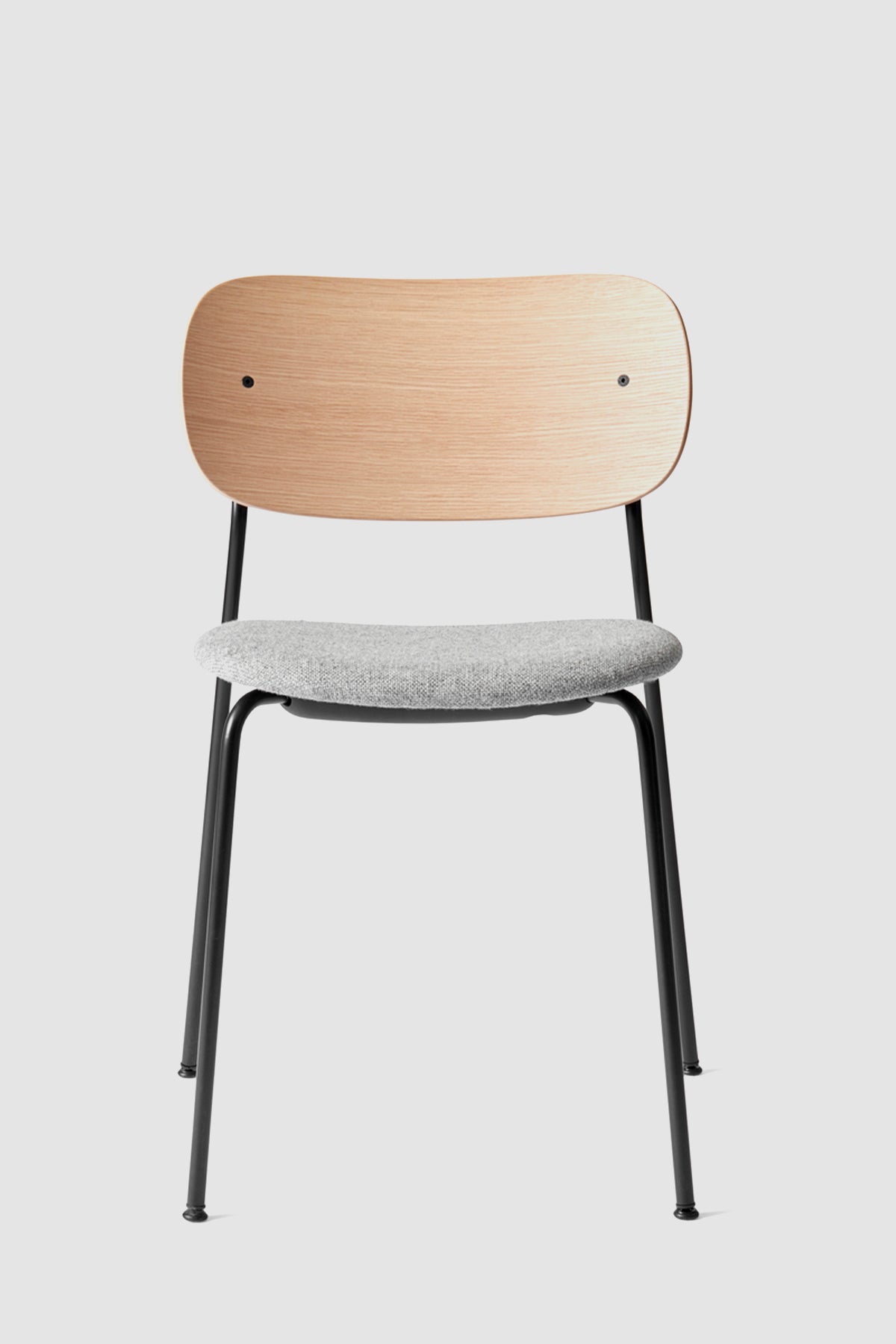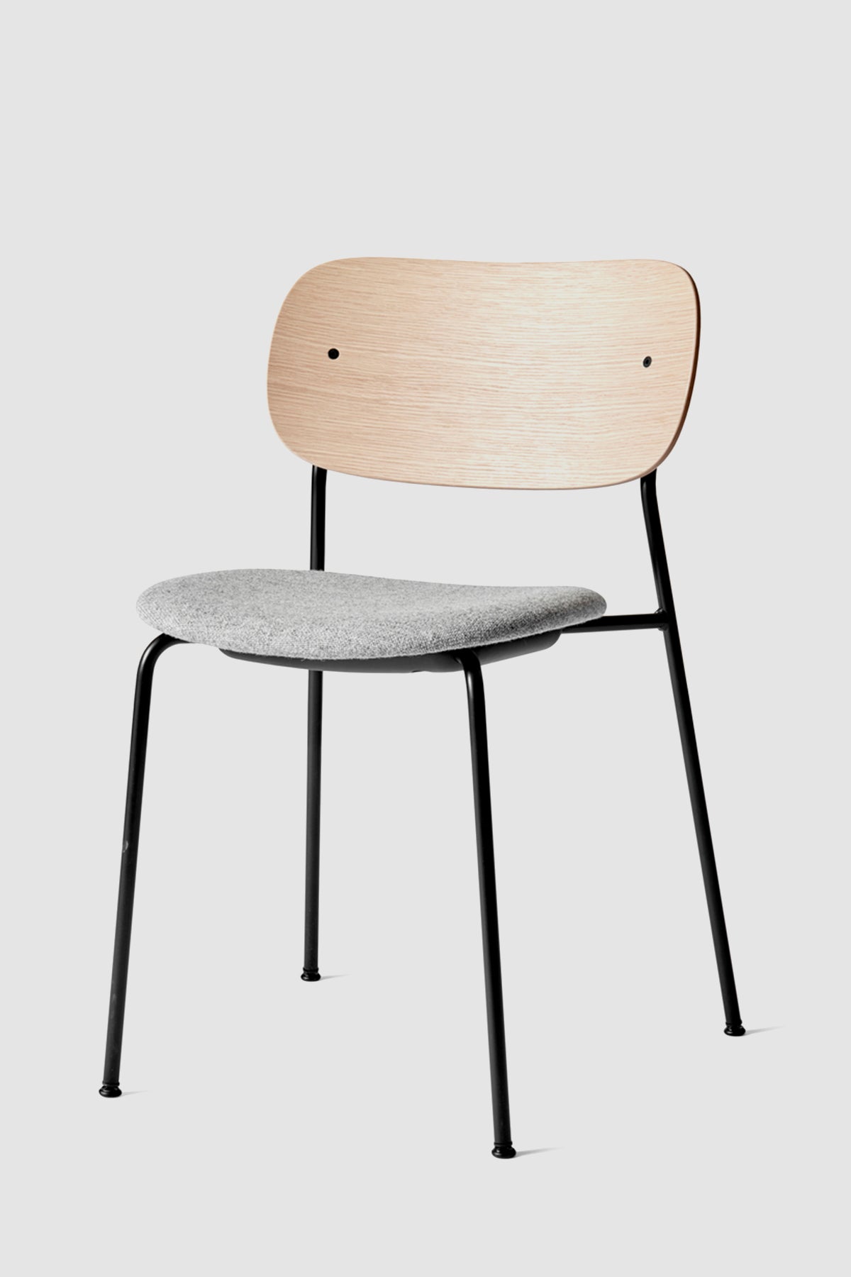 Co Dining Chair, designet av Norm Architects og Els van Hoorebeeck for Audo Copenhagen. Co Dining Chair kombinerer en lett, minimalistisk profil, varme materialer og god sittekomfort pluss muligheten til å stable opptil 10 stoler i et kompakt tårn som gjør den ekstra praktisk. Designets allsidighet er resultatet av en gjennomtenkt konstruksjon og et bredt utvalg av materialer: med mange finérfinisher og møbeltrekk å velge mellom, er Co Dining Chair lett å tilpasse deg og dine behov. Stolens proporsjoner utmerker seg med en bred finérrygg som gir eksepsjonell støtte, og gir samtidig bevegelsesfrihet og maksimal sittekomfort. Sete og rygg er laget av buet kryssfiner, mens kjernen er laget av bøkefinér med ytterlag av eikefinér. Dobbeltlags-skum brukes i polstrede seter for ekstra komfort. Stolens base er laget av bøyd MIG+TIG-sveiset stålrør og armlener fra stålstenger, enten i sort, pulverlakkert stål eller i forkrommet stål. Co Dining Chair finnes med og uten polstring i sete/rygg, med og uten armlene, i lys, mørkebrun eller sort eikefinér, med sort eller krom base, og i utallige materialkombinasjoner. Kom innom oss for å se på materialprøver og få hjelp til å designe din drømmestol.