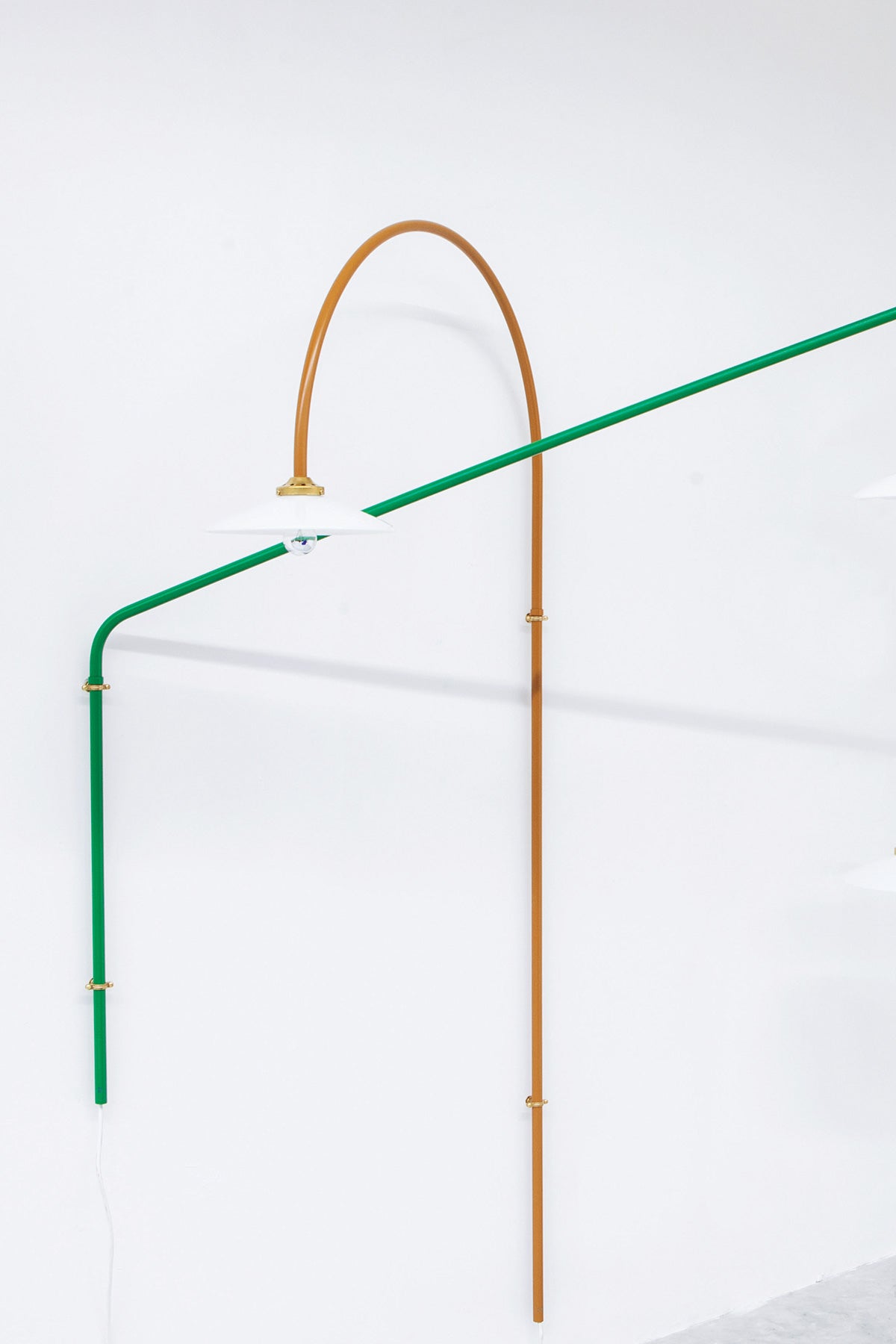Hanging Lamp vegglampe N°2, designet av Muller Van Severen for Valerie Objects. Hanging Lamp-serien har et naivt og lekent formspråk i sterke farger og er laget av pulverlakkert stål eller messing med en enkel lampeskjerm i hvitt glass. Lampene er sofistikerte med en industriell look og et ukomplisert og ærlig design. La den henge over spisebordet, sofaen, sengen eller i gangen, og la fargene tilføre liv og lekenhet til innredningen. Siden Hanging Lamp kommer i flere ulike varianter og størrelser, kan du finne den perfekte match til ditt hjem.
