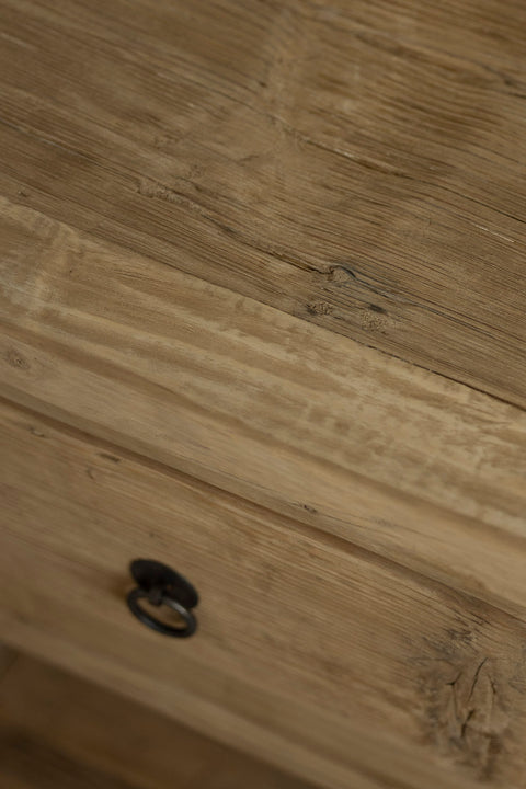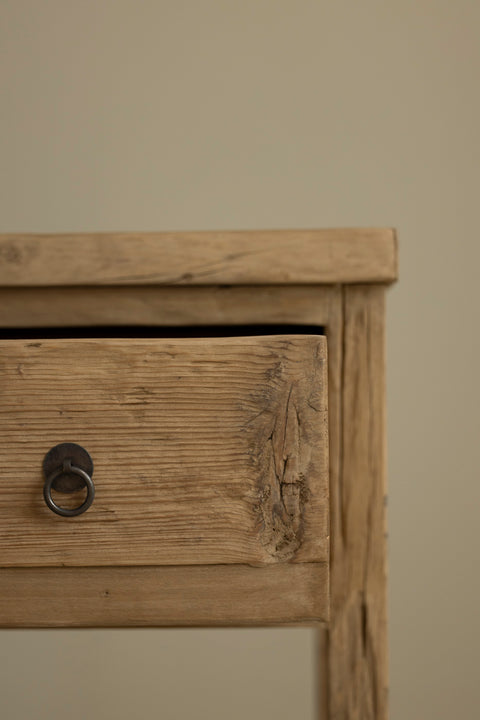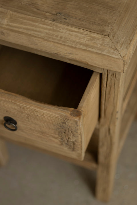 Vintage nattbord med skuff fra Snowdrops Copenhagen. Nattbordet laget av over 100 år gammelt treverk fra dører og har en fantastisk patina. Hvert enkelt nattbord er håndlaget og unikt, og vil derfor variere noe i farge og størrelse. Det stilrene uttrykket og gamle treverket gir en behagelig varme og særegenhet til interiøret, og vil passe inn uansett stil - både på soverommet hjemme og på hytta. Kom innom oss på Bolina hvis du ønsker en nærmere titt!