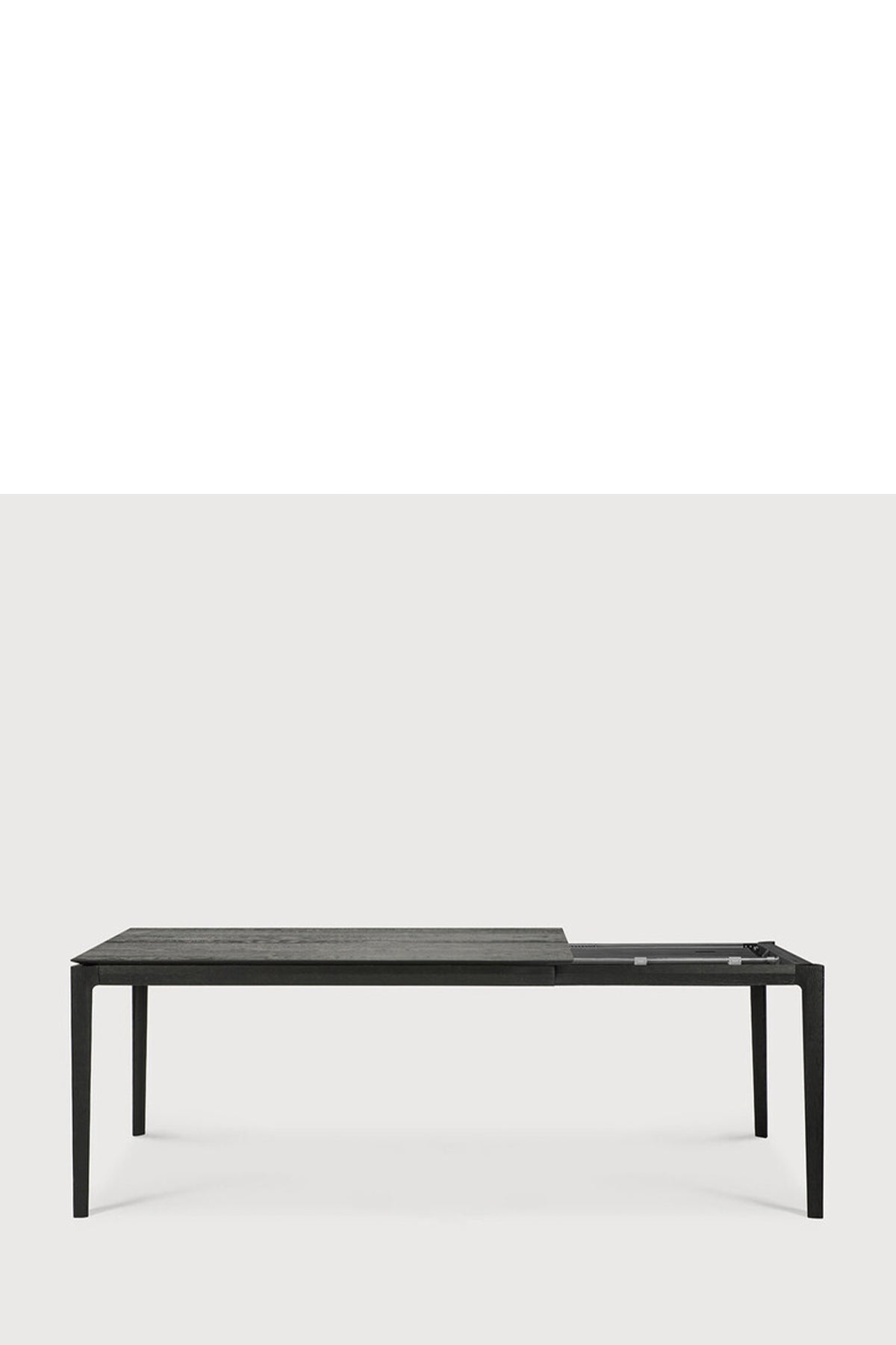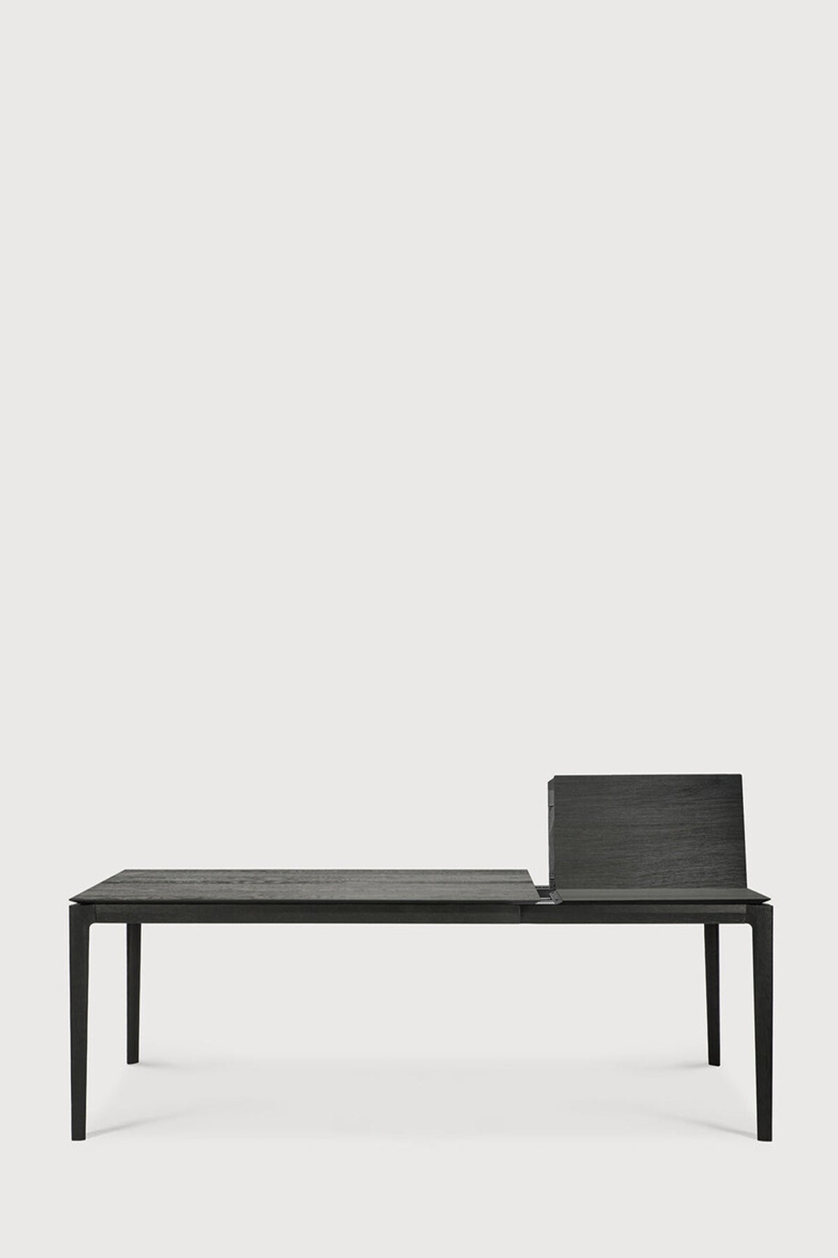 Bok spisebord i solid eik med ileggsplate fra belgiske Ethnicraft, designet av Alain van Havre. Det forlengbare bordet måler 140cm og 220cm med ileggsplaten, perfekt hvis du har flere til bords en dag. Bordet har et stramt og minimalistisk uttrykk med en solid konstruksjon. Designet er enkelt, med komplekse detaljer som gjør det tidløst og personlig. Ethnicraft har fokus på å bruke europeisk eik i høy kvalitet og lar materiale komme til sin rett ved å beholde de naturlige varisasjonene og teksturene i treet. Dette er et bord du kan glede deg over i mange år fremover og som vil passe i alle hjem.