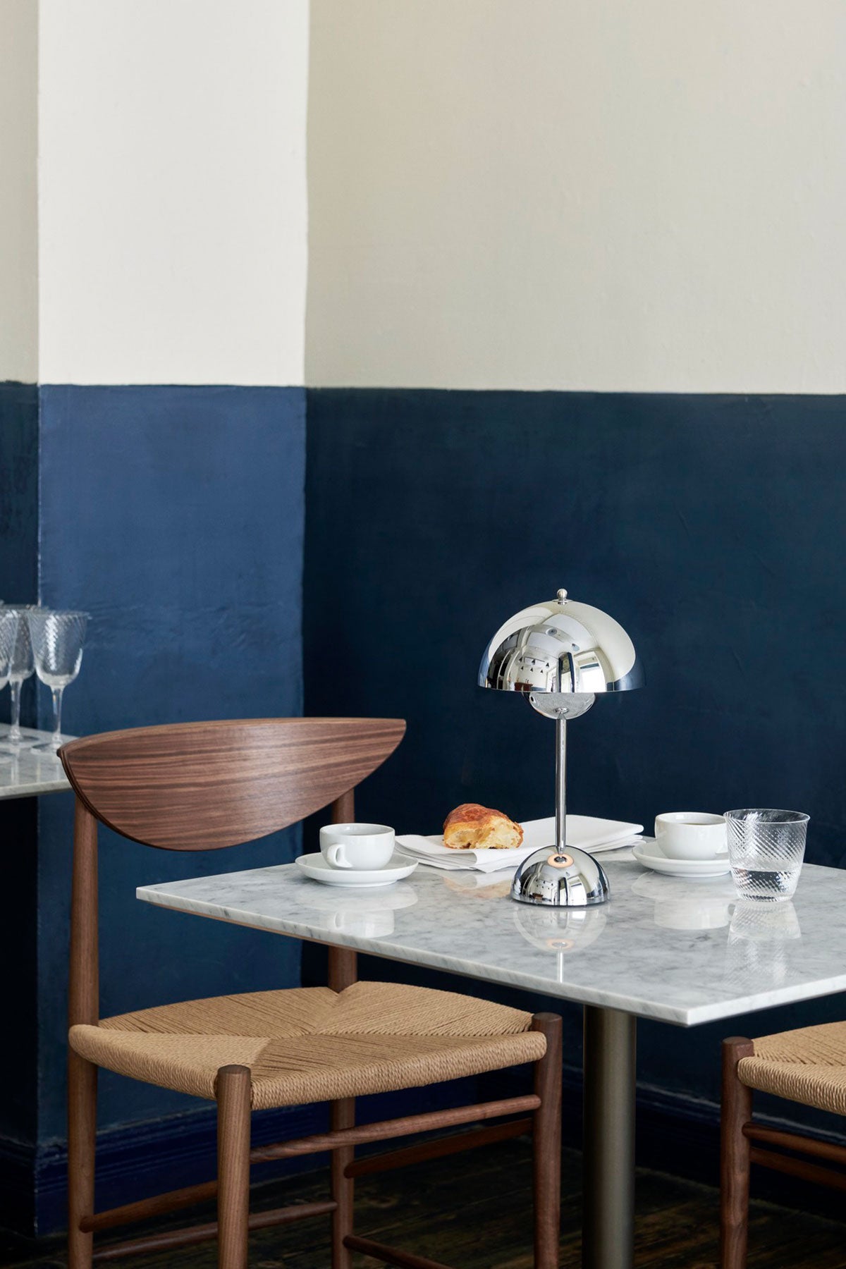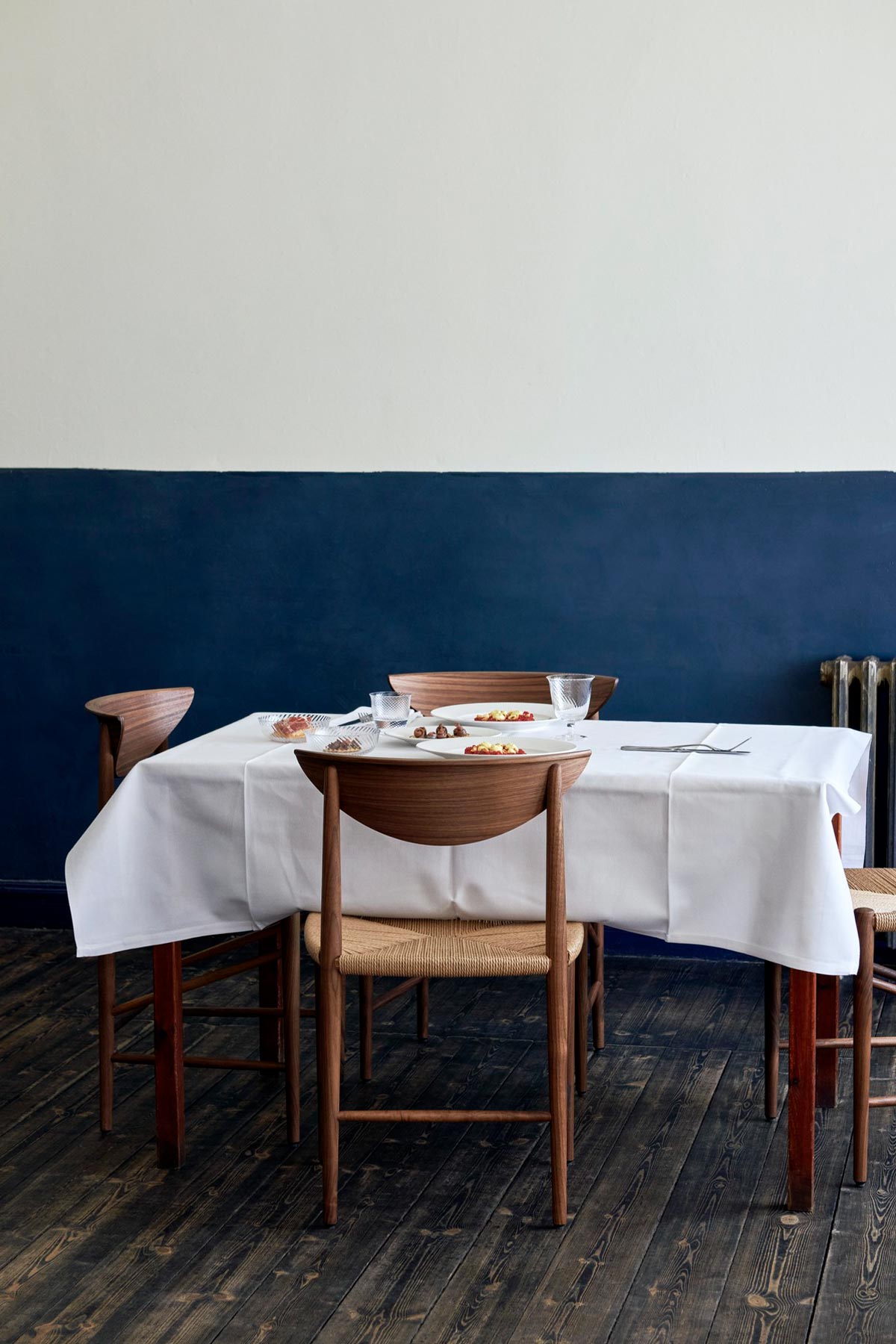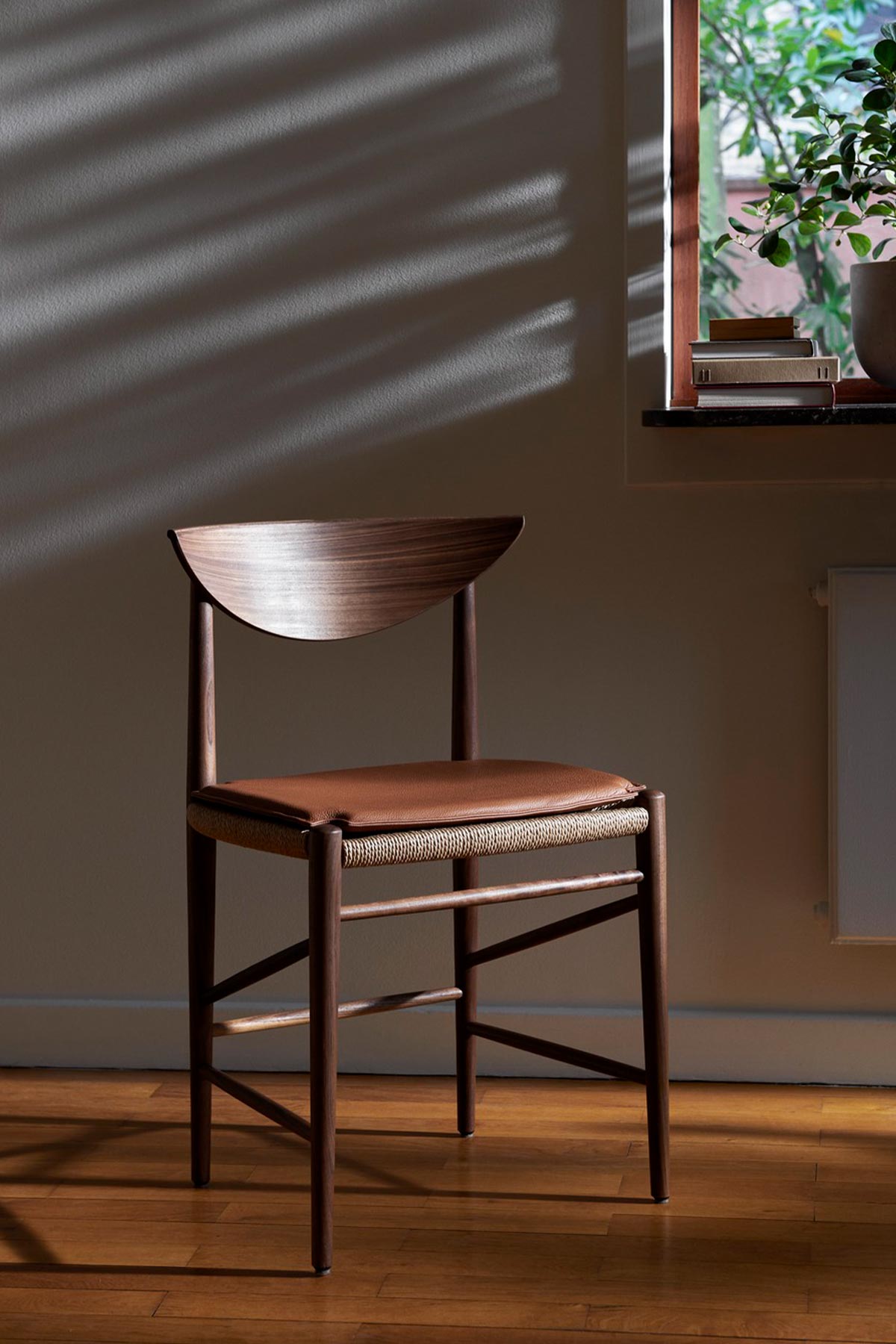 Drawn spisestol uten armlener i oljet valnøtt fra danske &Tradition. Drawn er en del av dansk designhistorie og ble designet av Hvidt & Mølgaard i 1956. Stolen er bygget på tradisjonelle håndverksteknikker og laget av naturlige materialer som tilfører en lunhet og varme til hjemmet. Tilgjengelig i oljet eik, oljet valnøtt, såpet eik, og i svartlakkert eik. Den kommer i to versjoner: en bredere modell med armlener, eller en noe smalere uten armlener. I tillegg kan man kjøpe ekstra sittepute i enten Prescott-svart eller cognacfarget skinn for en enda mykere sitteopplevelse.