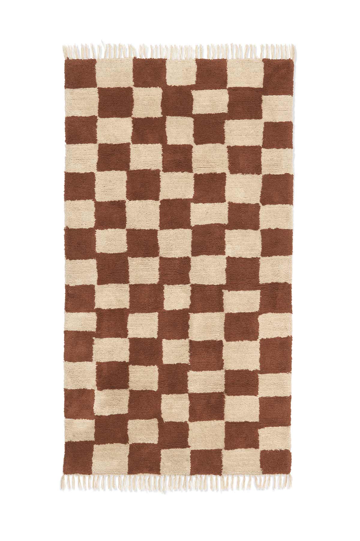 Mara Washable Rug fra Ferm Living er et mykt, rutet gulvteppe i økologisk bomull med dekorative frynser som kan passe i flere rom. Gi soverommet, barnerommet, kjøkkenet eller gangen en mykere touch. Håndtuftet fra GOTS-sertifisert, økologisk bomull, og er et vågalt, men balansert design som vil gi ethvert rom et lekent element av kontrast. Det beste er at du bare kan hive den i vaskemaskinen når den blir møkkete, som gjør teppet enda mer praktisk og brukervennlig.