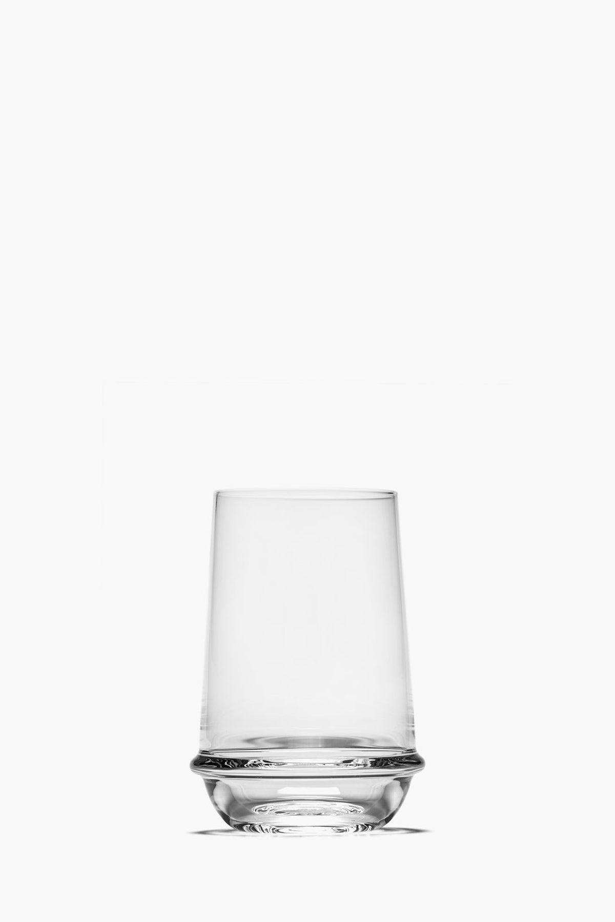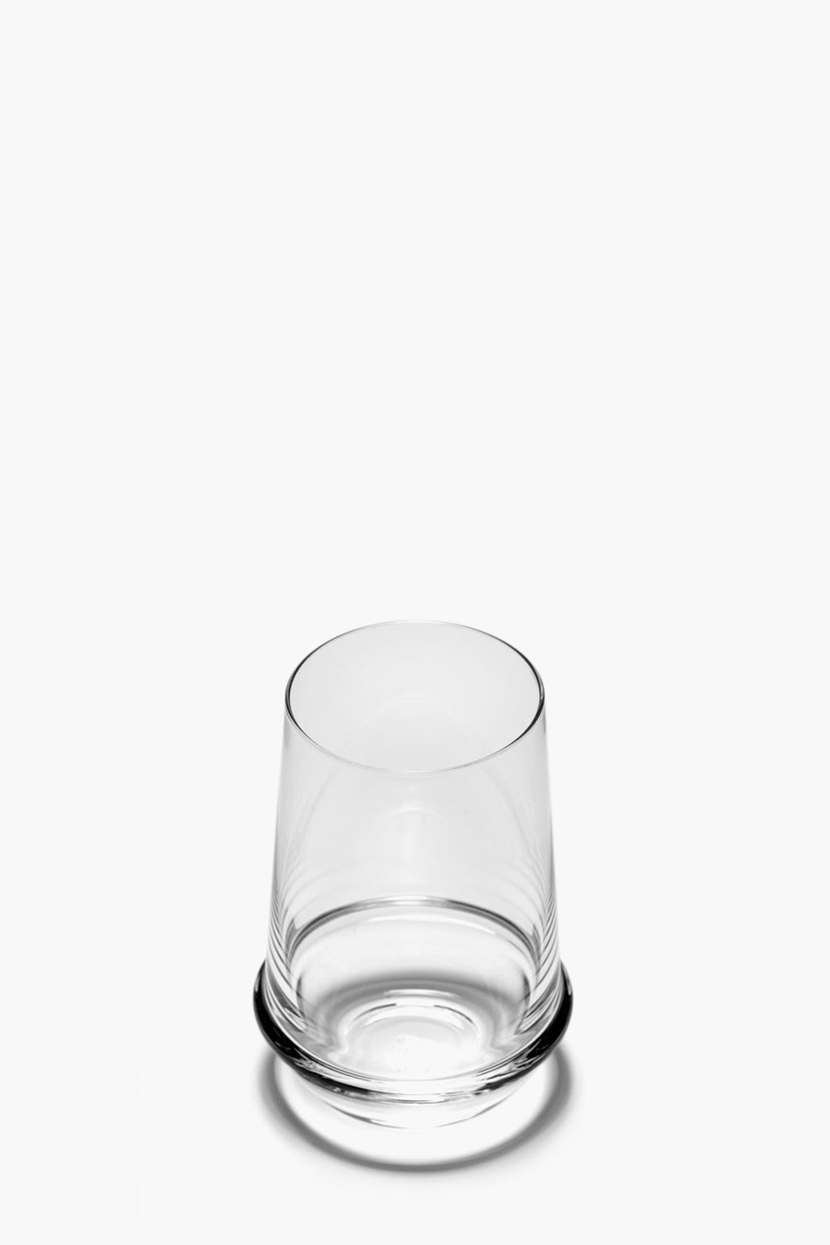 Drikkeglass fra Dune-kolleksjonen designet av den ledende amerikanske designeren Kelly Wearstler. Dune tar inspirasjon fra gammel keramikk, hvor Wearstler fremhever de skulpturelle formene og bruker ulike materialer som porselen, tre og glass for å skape et balansert og taktilt uttrykk til kolleksjonen. Glassene, koppene, skålene, tallerkenene og serveringsfatene kombinerer to finisher - matt og blank – med balanserte detaljer som skaper slående volumer og harmoniske komposisjoner. Dune Tumbler er munnblåst og er et tidløst valg som likevel stikker seg ut med sin uvanlige, buede form. Bruk med eksisterende servise eller kombiner med andre produkter fra Dune-kolleksjonen.