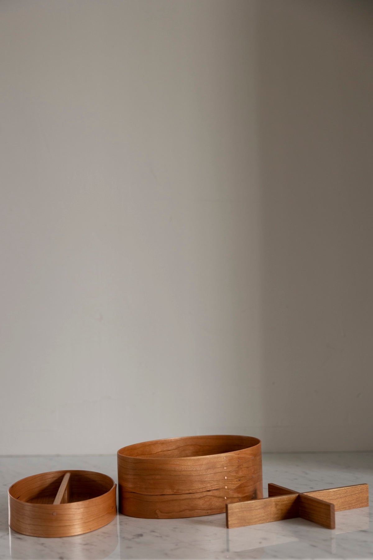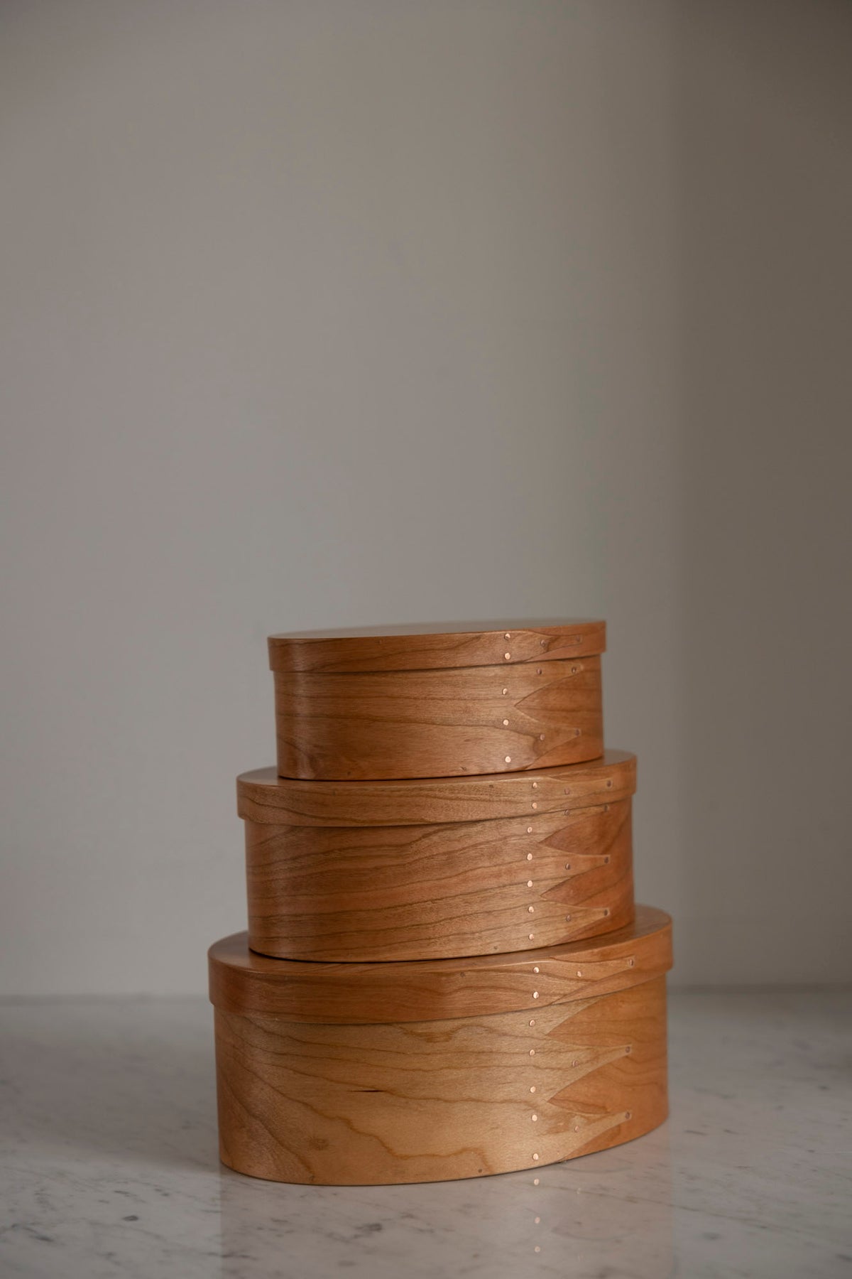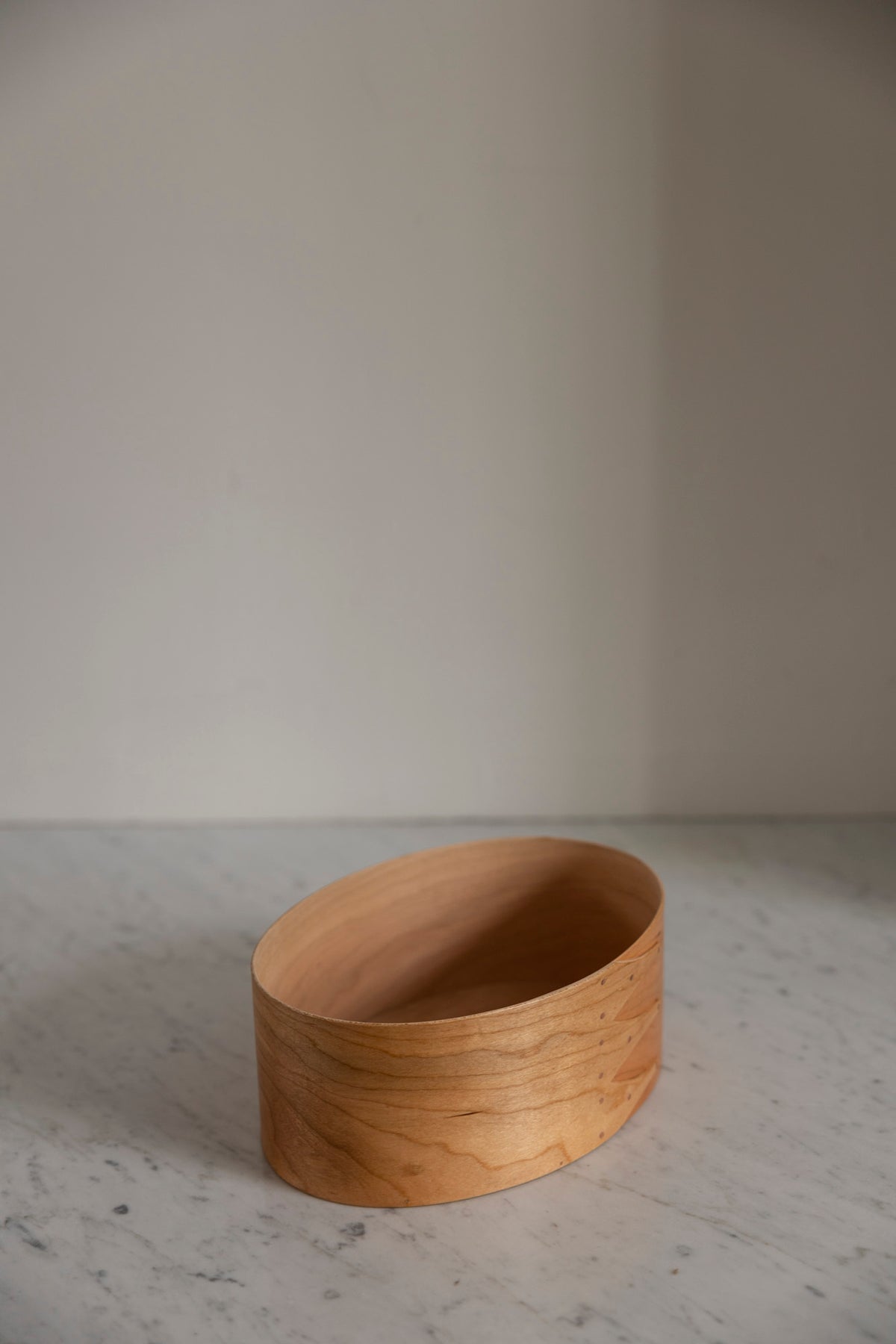 Vakker boks i kirsebærtre fra danske Shaker. De ovale Shaker-boksene er essensen av klassisk håndverk og tidløs design og er håndlaget på samme måte som de har gjort de siste 250 årene. Boksen er laget av kirsebærtre med kobbernåler og små trepinner, og er nøysomt utformet. Bruk den som dekor, oppbevaring eller en kombinasjon av begge. Boksene finnes i flere størrelser og som smykkeskrin.
