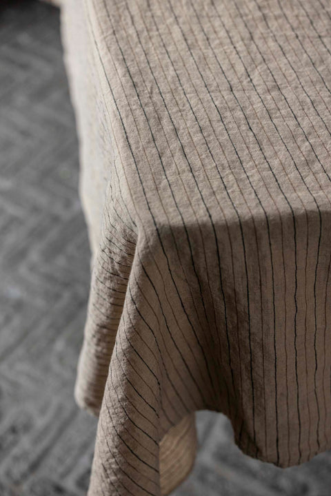 Linge Particulier har en kvalitet som ikke kan kopieres, og den litt krøllete teksturen etter vask gjør den bare enda vakrere – stryking er ikke nødvendig! Denne duken er like perfekt hjemme som på hytta, og er et produkt vi er stolte av å ha i Bolina.